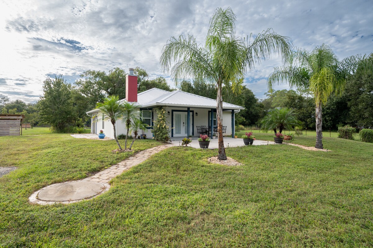 Relájate en tu casa de huéspedes privada situada en un tranquilo terreno de 4,5 acres en Tomoka Farms. Esta moderna suite de estilo casa de campo tiene poco menos de 300 pies cuadrados con cocina americana, cama tamaño queen, escritorio, tocador, baño completo y estacionamiento para coches, bicicletas, barcos o remolques. Ubicación céntrica para todo el entretenimiento cerca de Daytona Beach. A solo 6 millas del Circuito Internacional de Daytona para todos los eventos de Nascar, a 4 millas de uno de los lugares más populares para la Semana de la Bicicleta y Biketoberfest, The Cabbage Patch, a 10 millas de la playa y más.