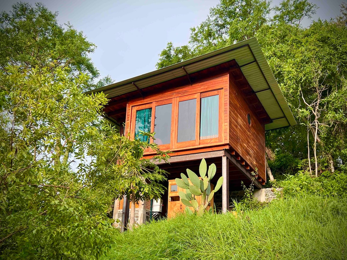 Disfruta en medio de la naturaleza en el bosque. Por la mañana podrás escuchar el canto de los pájaros con un café, aprovechar el tiempo para conectar con tu tribu y gozar el día como pocas veces se puede. La cabaña está ubicada a 15 min del centro de Tepoztlán en vehículo o a 5 min caminando al transporte que te llevará al centro. También podrás evitar todo el tráfico ya que no necesitas cruzar el centro. Muy conveniente en puentes y fines. La propiedad está cercada. La vegetación varía.