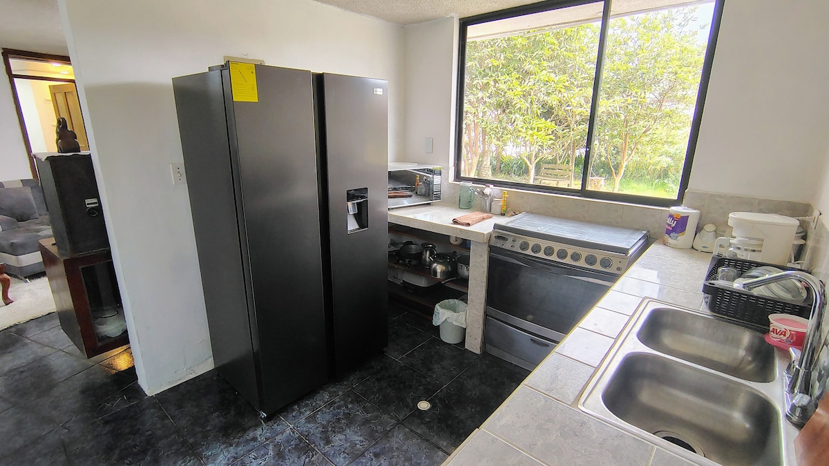 Suite privada e independiente, rodeada de naturaleza y con vista relajante, ubicada a 20 minutos del aeropuerto. Ideal para parejas o viajeros que buscan descanso, privacidad y fácil acceso a la ciudad. Cuenta con: -Parqueadero gratuito -Cama queen size con ropa de cama premium y cortinas oscuras -Cocina equipada -Baño privado con agua caliente -WiFi rápido -Smart TV -Café de filtro y azúcar Disfruta del jardín y área de fogata en un ambiente tranquilo y seguro, con clima espectacular.