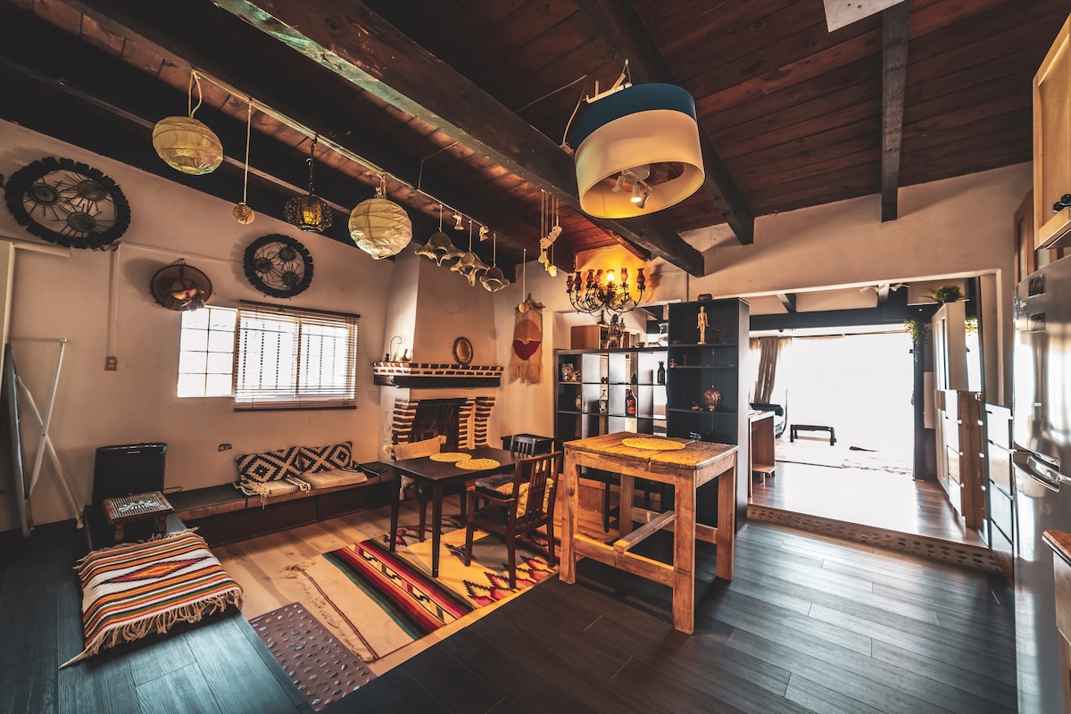 Esta casita única ha sido totalmente remodelada con un excelente encanto español europeo, con una elegante cocina espaciosa, baño de 3 piezas, cama con dosel románticamente cubierta vestida con lujosas sábanas, una chimenea de leña, pintoresco patio de jardín con fuente y mesa de bistró, una palapa privada en la azotea con vistas completas al mar y columpio de cama tamaño queen y taburetes con percha de comedor, etc. ¡Todo a poca distancia de escalones que conducen a nuestra playa privada para kilómetros de caminata cuando la marea está baja!