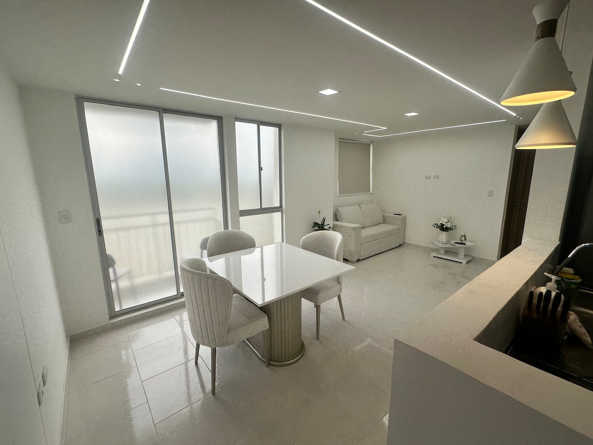 Apartamento moderno y elegante ubicado a solo 5 minutos del aeropuerto. Ideal para viajeros, parejas o familias de estancias cortas. Cuenta con sala cómoda, comedor moderno, Smart TV, cocina totalmente equipada, habitación principal con aire acondicionado y TV, la habitación auxiliar con ventilador, para un descanso perfecto. Un espacio tranquilo, limpio y acogedor, pensado para que te sientas como en casa durante tu estadía.