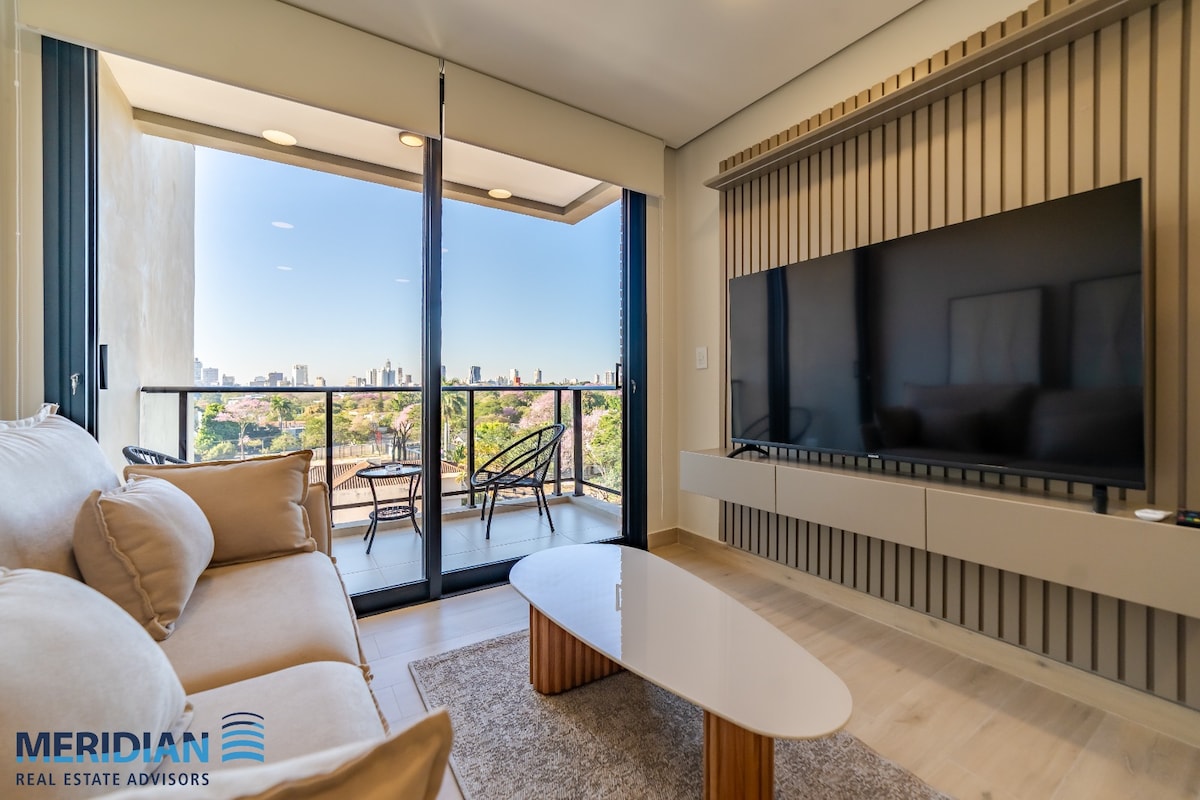 Estudio moderno en edificio nuevo, a pasos de Villa Morra y del Shopping Mariscal López, Food Park, supermercados, bares y restaurantes Perfecto para parejas o viajeros de negocios. Incluye aire acondicionado, lavadora/secadora (¡muy poco común!), microondas, filtro de agua fría/caliente (¡muy poco común!), cafetera, Wi-Fi rápido, escritorio de trabajo, Smart TV, cable y amplio balcón. Acceso a la terraza, piscina y gym.