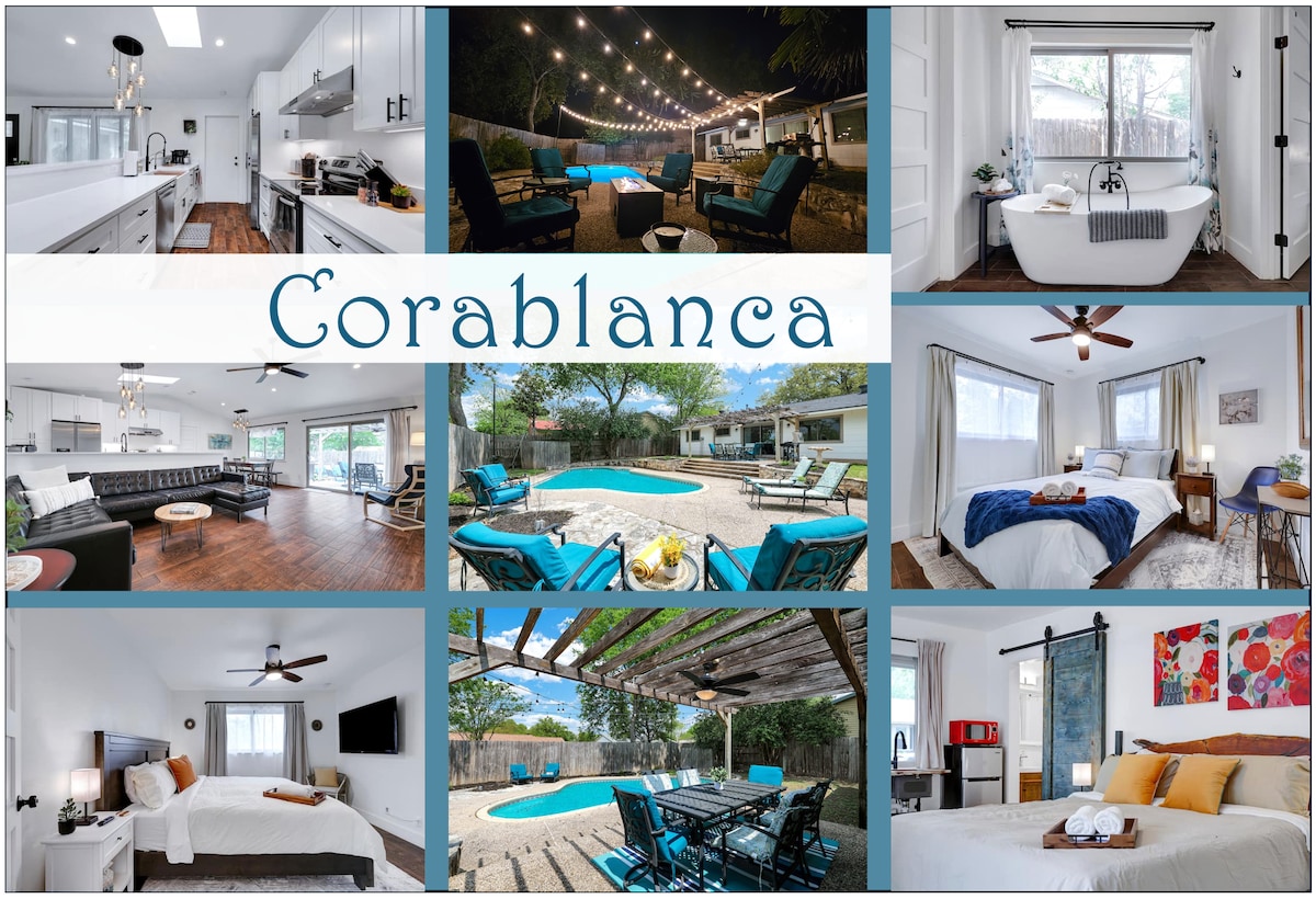 ¡Descubre el pináculo de la comodidad y el lujo en nuestro Airbnb recién renovado! Este relajante refugio tiene capacidad para más de 16 personas y cuenta con accesibilidad total para personas con discapacidad. Te encantarán nuestras habitaciones cuidadosamente diseñadas con baños adjuntos, piscina recién renovada, cabaña al aire libre con parrilla y centro de actividades familiares. Céntrico para las principales atracciones de San Antonio, como Six Flags (14 minutos), Sea World (17 minutos), River Walk (16 minutos), Álamo (16 minutos), el aeropuerto de San Antonio (13 minutos) y el centro comercial La Cantera/The Rim (15 minutos).
