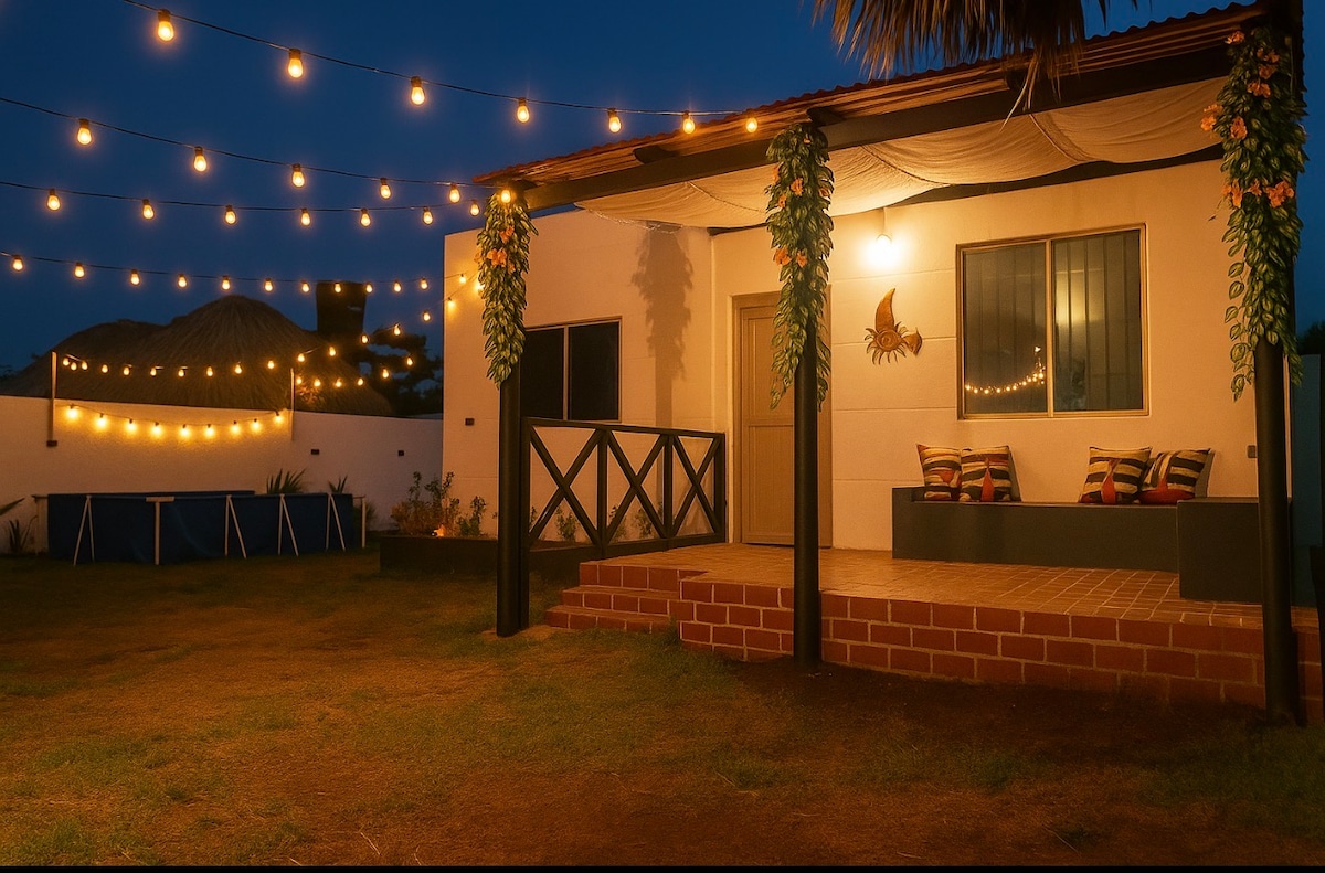 Anímate y vive una experiencia inolvidable con la familia en Cabaña Olas del mar, se encuentra ubicada en las playas de San Bernardo del viento a pocos pasos de la playa en el departamento de Córdoba, es una cabaña unifamiliar totalmente privada y cerca al mar. Contamos con zona de parqueo privado y gratis, zona de piscina equipada con sillas de bronceo y parasol de exteriores, zona de estar con hamacas y muebles, zona de playa con carpa playera grande y múltiples sillas.