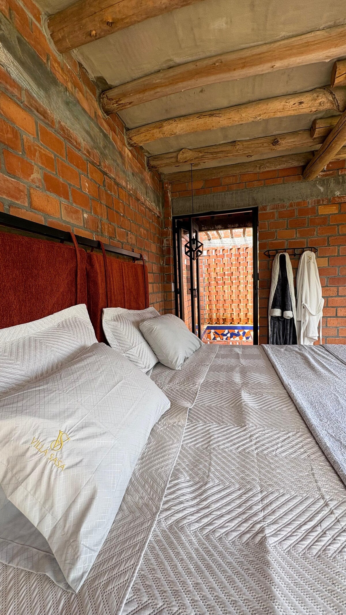Mi villa privada dentro de un glamping boutique en Barichara está diseñada para quienes buscan confort, privacidad y una experiencia diferente. Cuenta con una habitación amplia tipo suite, decoración artesanal, baño natural en piedra, terraza exterior y acceso a piscina. Es el lugar perfecto para desconectar, despertar entre naturaleza y disfrutar de un ambiente cálido, colorido y lleno de encanto.