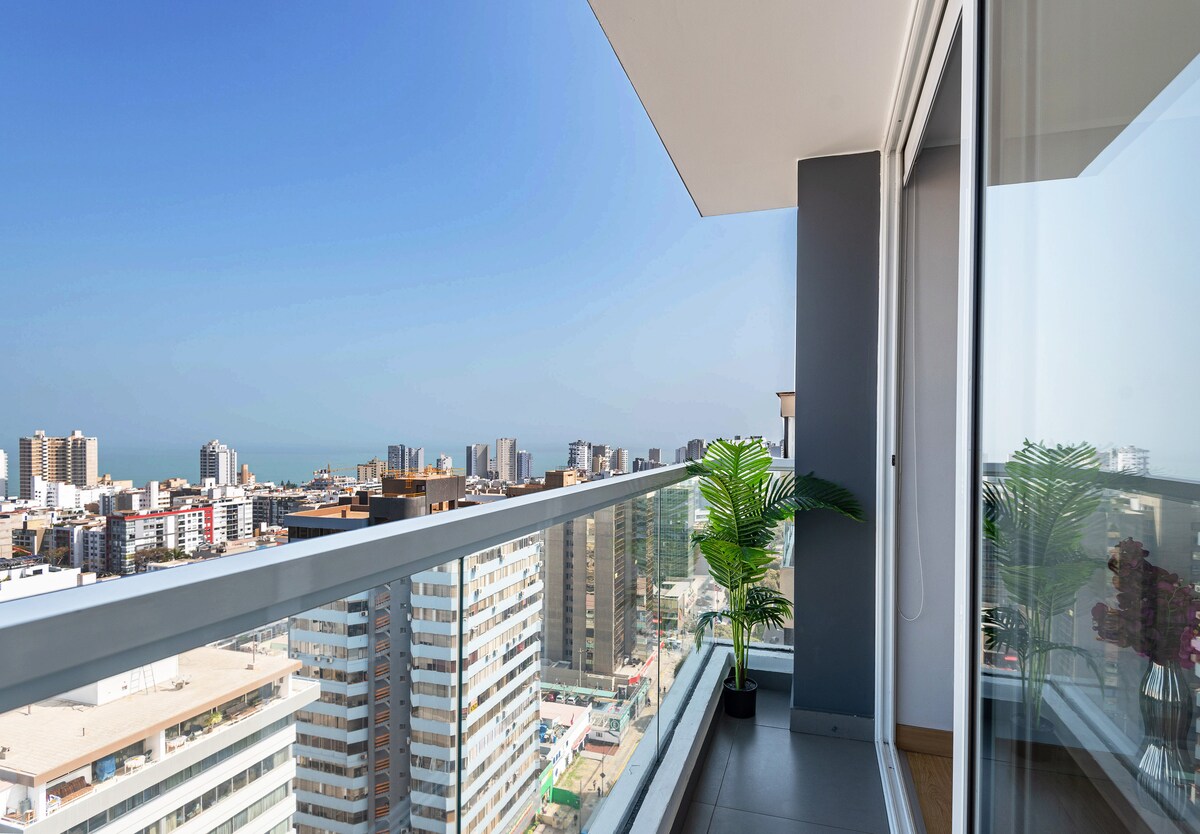 ¡Vive Lima desde el piso 20 con una vista increíble! 🛏️ Cama KING 📺 TV de 65" 🛋️ Cómodo sofá 🍳 Cocina equipada 🏊 Piscina, 🔥 BBQ y 🍸 Lounge Bar (según disponibilidad) 🚗 Estacionamiento por USD 8/noche (según disponibilidad) 🧳 Guarda maletas antes del check-in o tras el check-out Ubicación top entre Miraflores, San Isidro y Surquillo Teniendo 4.96⭐️ y siendo Superhost, te ofrezco una estadía cómoda y segura. ¡Reserva y disfruta Lima desde lo alto, con estilo y confort!