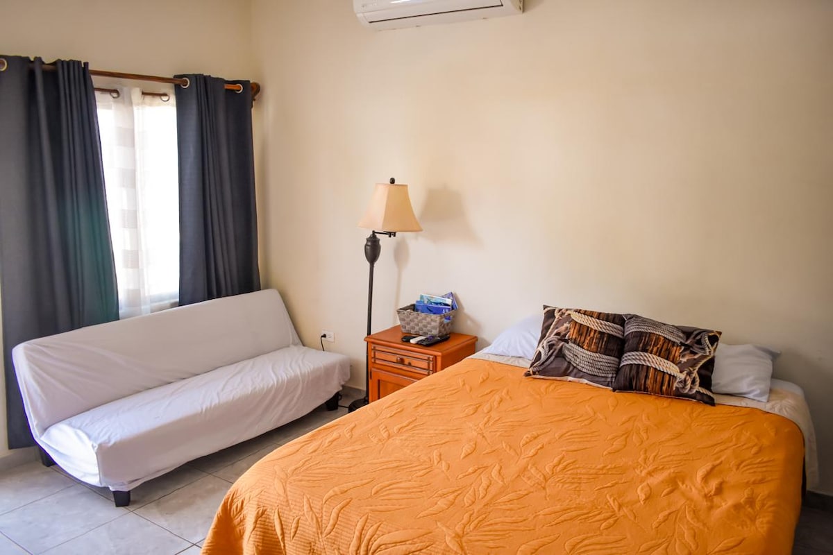 ✨ Amplio departamento en planta baja (22 m2) en un hermoso jardín tropical con más de 40 árboles frutales. Ubicado en el corazón del centro de Cabo! Tiendas, restaurantes y vida nocturna a unos pasos! 5 min. a pie de la marina y 15 min. a pie de la playa 🏝️ ✅ Colchón memory foam y cortinas opacas para descanso ✅ Estacionamiento privado GRATUITO ✅ Baño privado con amenities ✅ Cocina privada con electrodomésticos ✅ Café y té de cortesía ✅ TV con Netflix y YouTube ✅ Caja fuerte en la habitación