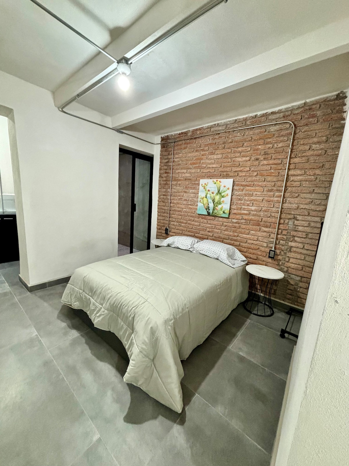 Moderno y acogedor departamento con acabados industriales y rústicos. Cuenta con espacios funcionales, baño completo con diseño contemporáneo y excelente iluminación. Ideal para quienes buscan comodidad y estilo en una excelente ubicación.