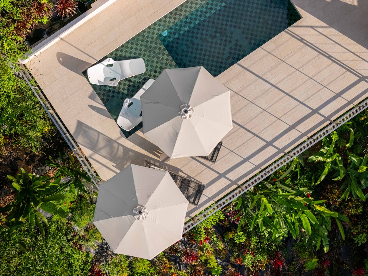 Acogedora villa con piscina de inspiración balinesa y vistas increíbles