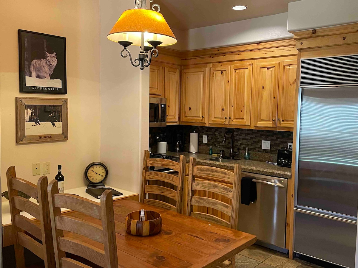 ¡Un condominio de esquí perfecto para la familia! Este condominio de 3 dormitorios y varios niveles se encuentra en la deseable Telluride Lodge, a pocos pasos del ascensor 7. Clark 's Market está justo al lado para ir de compras de comestibles. Hay una chimenea de gas y cómodos sillones de cuero en la sala de estar. La mesa de comedor tiene capacidad para 6 personas y la barra de cocina tiene capacidad para 3 personas. Hay electrodomésticos de acero inoxidable y todos los utensilios de cocina y utensilios para hornear que necesitas para hacer una gran cena. Los servicios de la comunidad de propietarios no están garantizados. BL #235