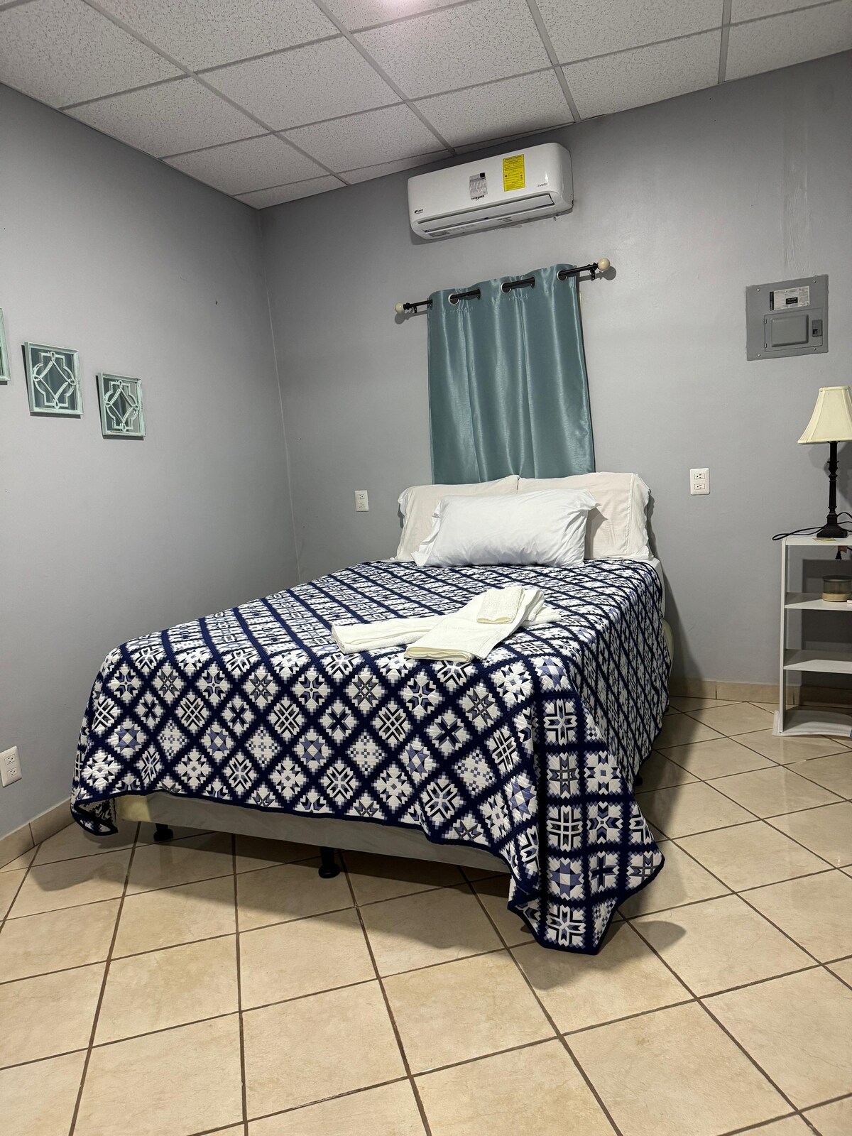 Habitacion amplia, confortable y privada, con aire acondicionado, 2 camas, baño privado, closet, internet y parqueo seguro para tu vehiculo. Ademas se comparten zonas comunes con otros huespedes, entre ellas: cocina, refrigeradora, microonda y lavadora. Excelente ubicacion, zona segura y tranquila.