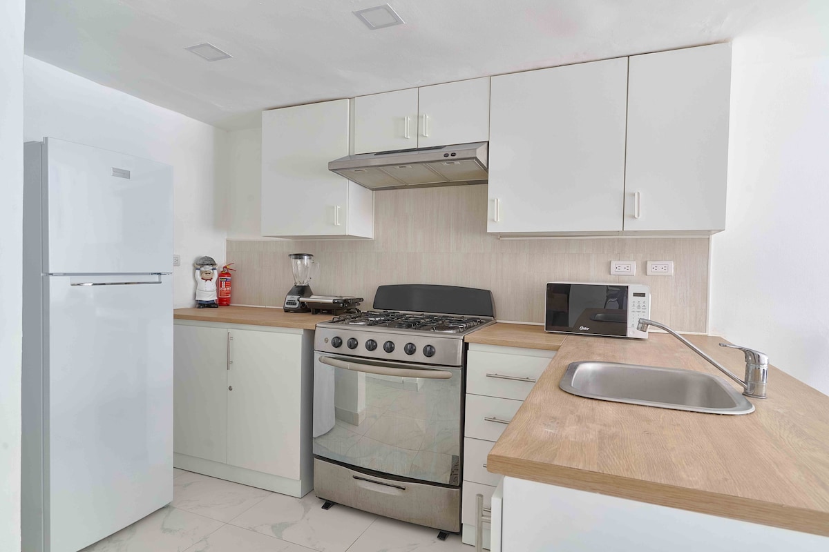🏝️ Welcome to Malecón SPM Your private Caribbean getaway, just one block from the iconic San Pedro Seawall (El Malecón). Enjoy the vibrant atmosphere with restaurants, bars, food parks, and nightlife all within walking distance—plus the best sunsets in the Dominican Republic 🌅. This apartment offers the perfect mix of comfort and privacy, featuring a spacious bedroom and a dedicated workspace for remote work or leisure.