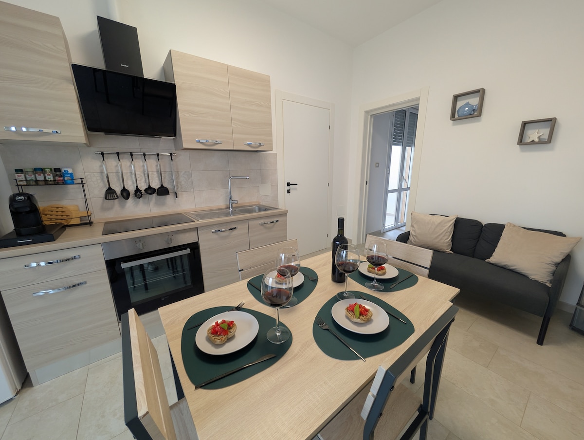 Recently renovated seafront apartment with incredible views and romantic sunsets. Located in one of the most desired areas of Salento, close to bars, restaurants, supermarkets, pharmacy, and beaches. A coastal road runs between the house and the sea, giving easy access to a scenic path perfect for walks or cycling. Ideal for exploring southern Salento. Free private parking available.