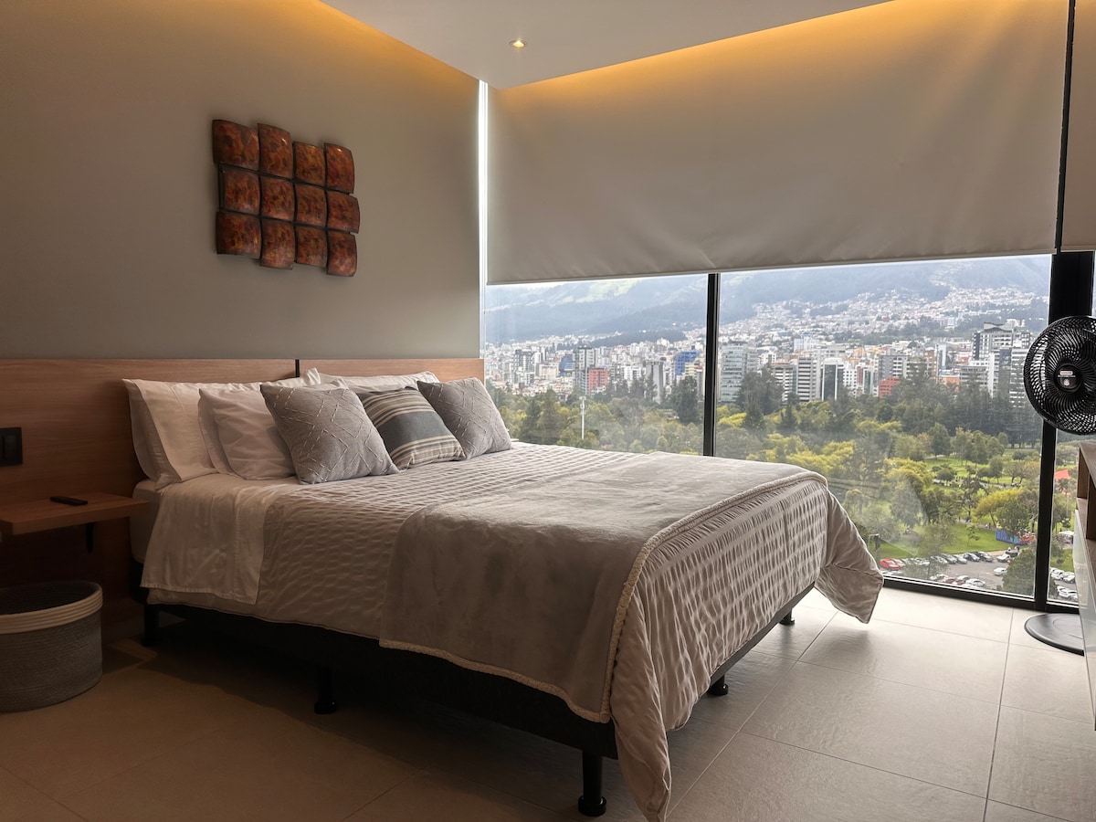 Disfruta de la mejor ubicación en Quito: un departamento moderno y acogedor frente al parque La Carolina. Perfecto para familias, ejecutivos y viajeros que buscan comodidad y acceso inmediato a lo mejor de la ciudad como restaurantes, parada del metro y centros comerciales. - Wi-Fi - Netflix - Plancha - Cocina totalmente equipada - Secadora de cabello - Lavadora y secadora - Agua caliente - Cortinas con control remoto. Áreas sociales - Gimnasio - Jacuzzi - Zona BBQ - Cine - Parqueadero