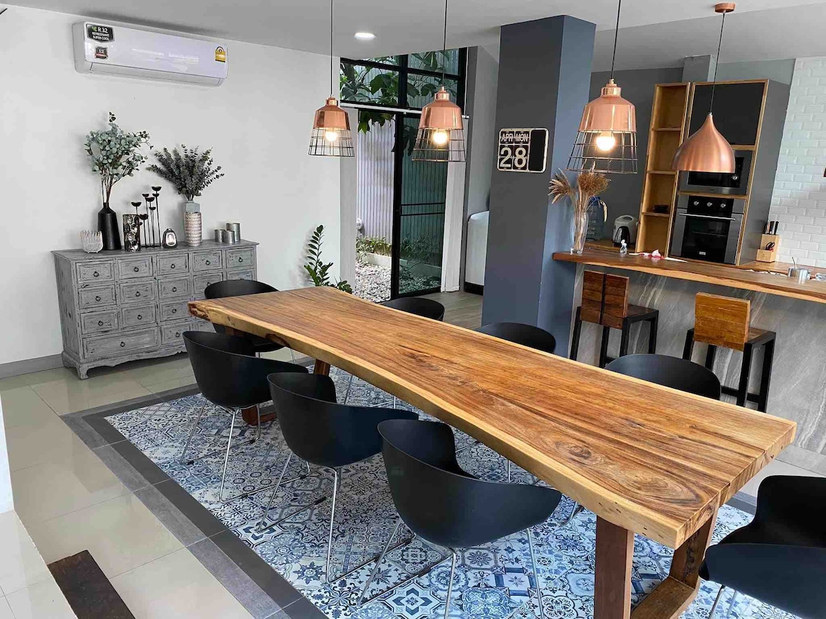 Nuestra hermosa villa es una escapada perfecta para familiares y amigos. Está equipado con aire acondicionado, cocina, escritorio, piscina privada y gran jardín verde. Nuestra familia como arquitectos construyeron este lugar como una casa de vacaciones. Y ahora, queremos compartirlo con cualquiera que venga y disfrute de su tiempo en Chiangmai. La casa se encuentra a la orilla del río de un vecindario local. Estaremos encantados de tenerlos a ustedes, amigos y familiares en Baan Thip Villa. Para más detalles, lea a continuación:
