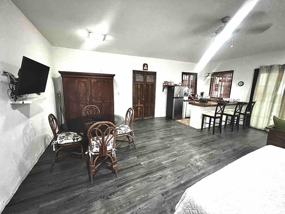 Disfruta de nuestro Loft Privado & Seguro! este es un alojamiento pequeño, tranquilo y céntrico. Ubicado a 4 minutos de la Zona Rosa! Y toda la oferta gastronómica de la San Benito!!! Equipado para trabajo remoto, y todo en uno!!! Si traes vehiculo, de preferencia carro sedan o compacto!🚗 Te puedes movilizar a pie, Zona segura y muy remodelada en el país!! Cuarto con 1 cama matrimonial y baño! Sala con Sofá Cama y puerta con Ventana al exterior! A/c y ventiladores disponibles para tu confort