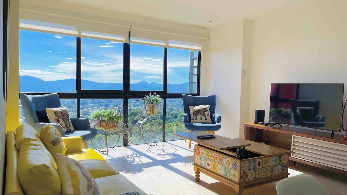 Your Modern Home in Antiguo Cuscatlán ✨ Stay in a stylish 1-bedroom apartment on the 11th floor, offering breathtaking views of San Salvador. Perfect for business trips, long-term stays, or a secure and comfortable base while exploring the city. Includes: ✔️ King-size memory foam bed, blackout curtains, desk & chair for remote work. ✔️ Modern living room with 65" Smart TV, Alexa, and sofa bed (1.70m). ✔️ Fully equipped kitchen ✔️ Private balcony with panoramic views ✔️ Parking & high-speed WiFi