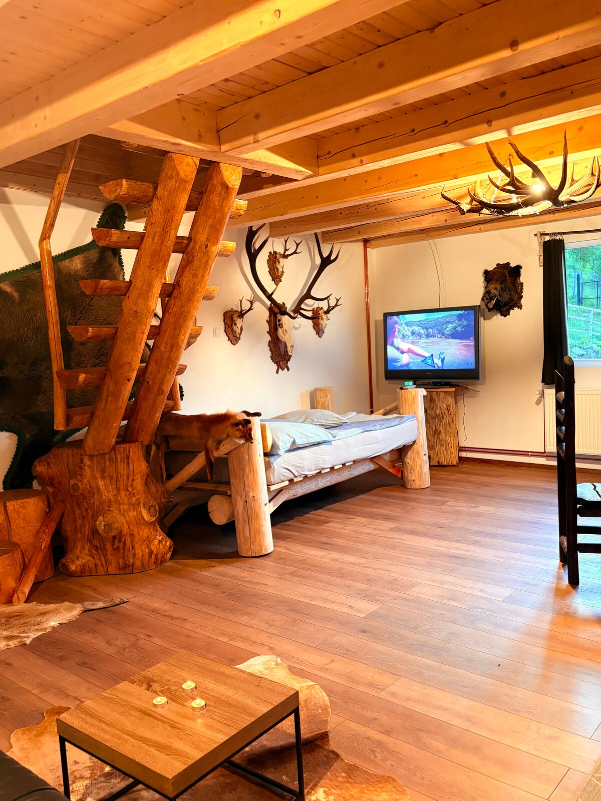 A Vadászlak ideális választás a pihenésre vágyóknak: nyugodt környezet, lenyűgöző kilátás, tágas tér és halastavak várják a természet szerelmeseit. Dézsával, az ár tartalmazza. Túrázási lehetőségek, turisztikai látnivalók és terepjárós kalandok teszik teljessé az élményt. Az otthonos hangulatú ház igazi feltöltődést nyújt. A közelben élelmiszerbolt, étterem, valamint igényelhető reggeli biztosítja a kényelmet. Ne hagyd ki ezt a különleges ajánlatot, és élvezd a pihenés minden pillanatát!