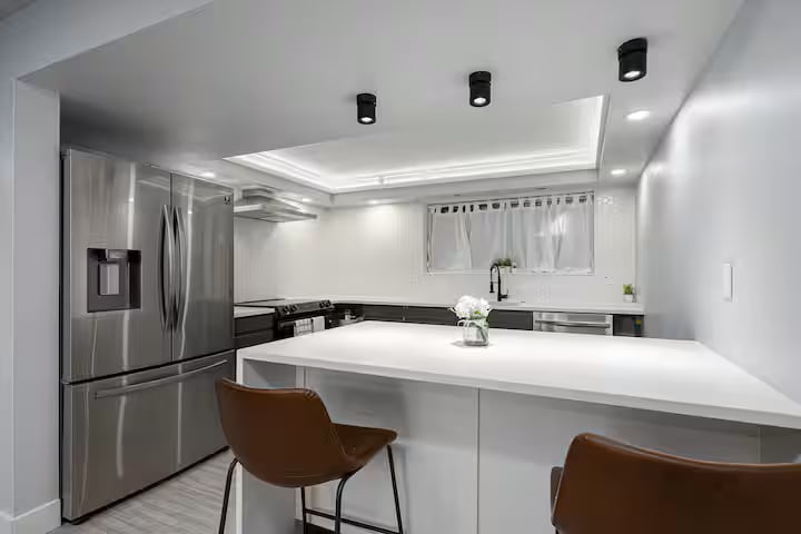 Descubre un refugio idílico en Utah, perfectamente situado cerca de estaciones de esquí y senderos. Disfruta de un apartamento privado en el sótano de 232 metros cuadrados con entrada independiente, 2 dormitorios, 1 baño compartido, una pequeña cocina, un gimnasio, un cine y vistas impresionantes de postal. El dormitorio 1 ofrece una cama tamaño king, mientras que el dormitorio 2 cuenta con una cama tamaño king y 2 camas individuales ajustables que se convierten en una cama tamaño king. Disfruta de SmartTV en todas las habitaciones, relájate en el gimnasio o en el cine y acércate a la chimenea para una relajación total.