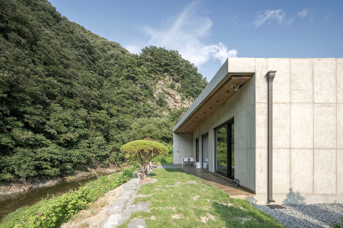 Es una casa rural con un césped y un jardín preciosos en el pueblo de Sancheokju. Hay un arroyo justo al lado de la casa, así que puedes escuchar el sonido de los insectos y el agua que fluye en el arroyo cuando te acuestas por la noche. Excepto en temporada de sequía, también puedes jugar con las lombrices.
