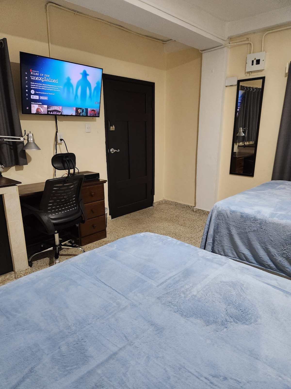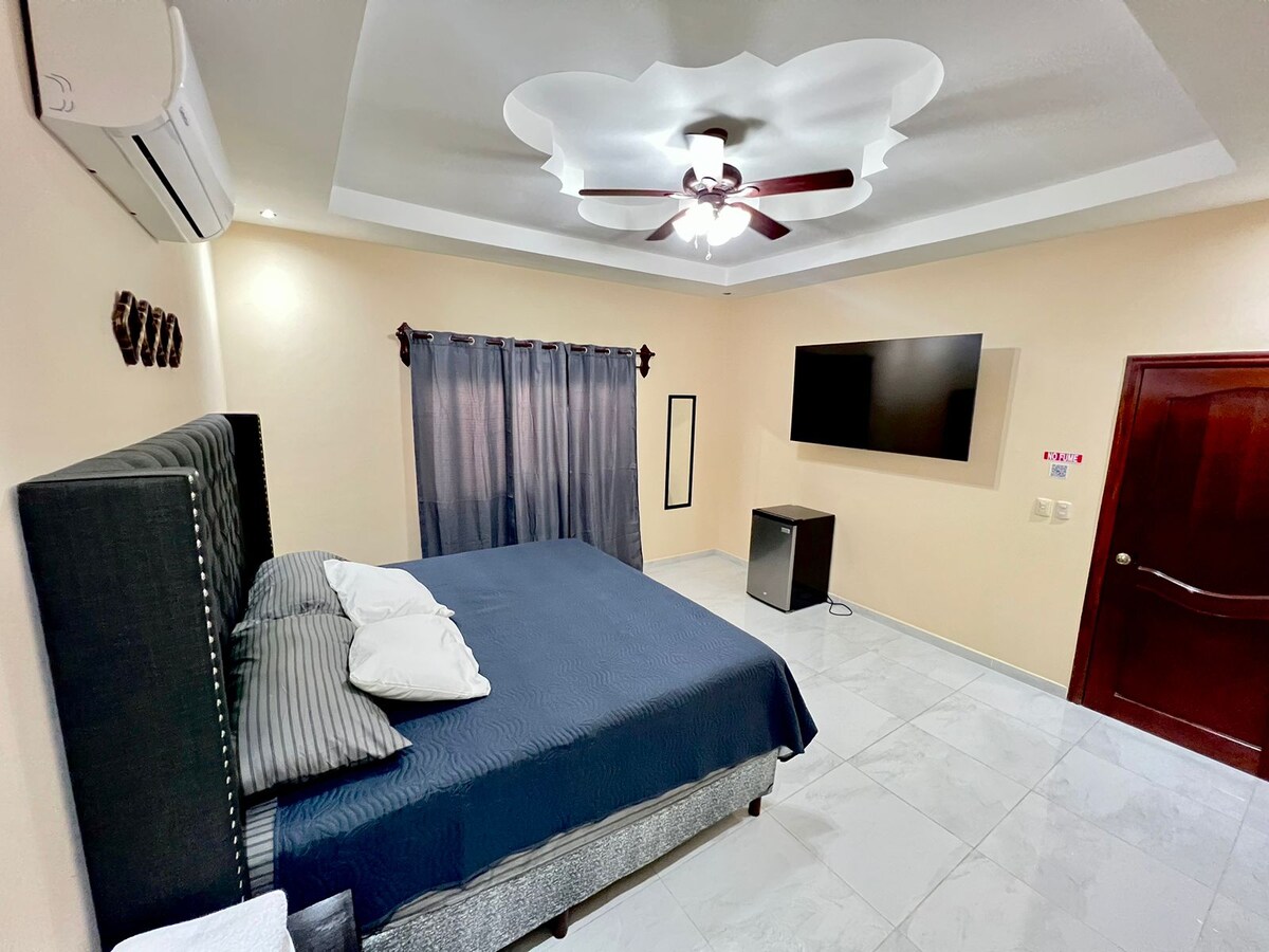 Villas del Sol Residencial Segura de Circuito Cerrado Para tu comodidad amplia habitación que Incluye: • Aire Acondicionado • Wifi • Parqueo techado • Agua Caliente - Baño privado • Residencial de Circuito Cerrado con Seguridad Privada 24/7 • Mini Nevera • Cama King • Televisor Smart Tv 65 Pulgadas • Netflix • Closet • Servicio Uber y traslado • Lavandería • Plancha Contamos con Factura con CAI y RTN Horarios de entrada Flexibles con previa autorizacion