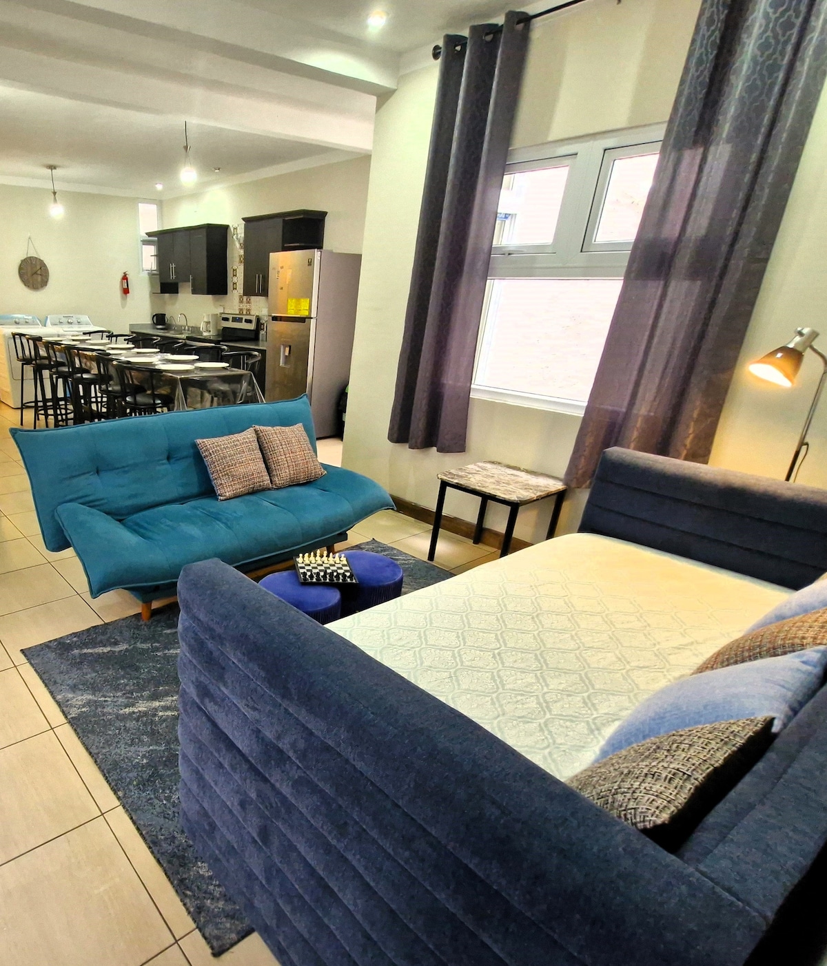 Ubicado en la zona 15, este amplio alojamiento de 3 dormitorios y 3 baños es ideal para familias grandes o grupos de hasta 15 personas. A solo 300 metros del Hospital el Pilar y a 3.5 km de Ciudad Cayalá, ofrece acceso rápido a puntos clave como el zoológico La Aurora, y la Embajada de EE. UU. Disfruta de una cocina totalmente equipada (top de granito, cafetera, microondas, estufa eléctrica con horno y más), estacionamiento techado, lavadora/secadora y una amplia mesa para 12 personas.