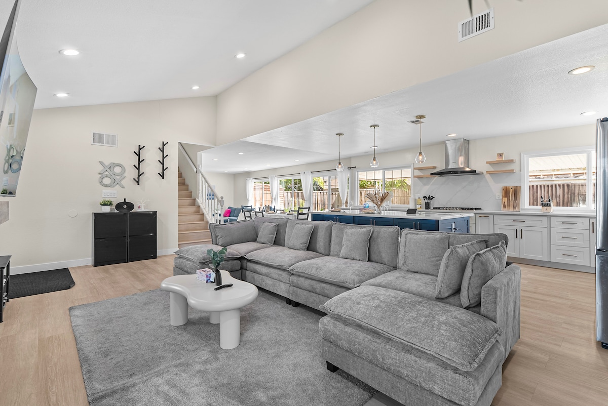 Relájate con estilo en el corazón de Silicon Valley. Nuestro patio trasero ofrece un refugio tranquilo, con árboles frutales e iluminación ambiental. Las comodidades modernas te esperan en el interior, desde muebles nuevos, internet de alta velocidad, una oficina ejecutiva y un gran comedor. Tus aventuras culinarias están respaldadas por una cocina bien surtida y nuestros dulces de cortesía. Con protección ADT y un amplio estacionamiento, la comodidad está garantizada. Todo ello en un barrio sereno, a pocos minutos de centros tecnológicos y de entretenimiento.