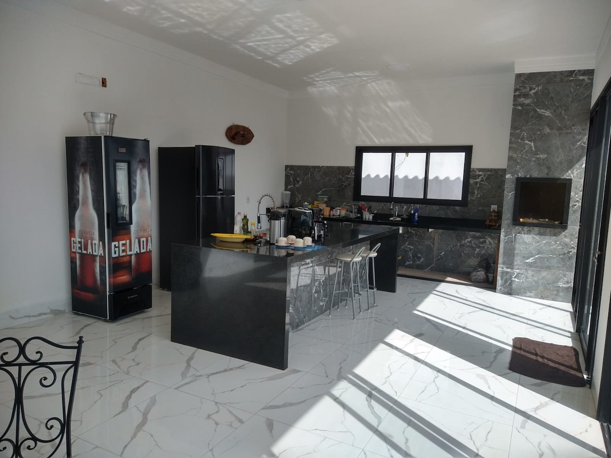 Pasar un buen rato con toda la familia y/o amigos en este lugar elegante. 2 dormitorios: 1 doble, 1 con 2 camas individuales Habitación con sofá cama 2 piscinas exclusivas Ofurôs Wet Bar Sala de juegos Espacio para niños Ruta de senderismo Sala de máquinas Restaurante Luncheonette Parrilla Acceso al río (campamento en el río) Si lo deseas, acceso al parque acuático Grandes Lagos (no incluye invitación) Mini horno eléctrico (con freidora) ° Minibar;