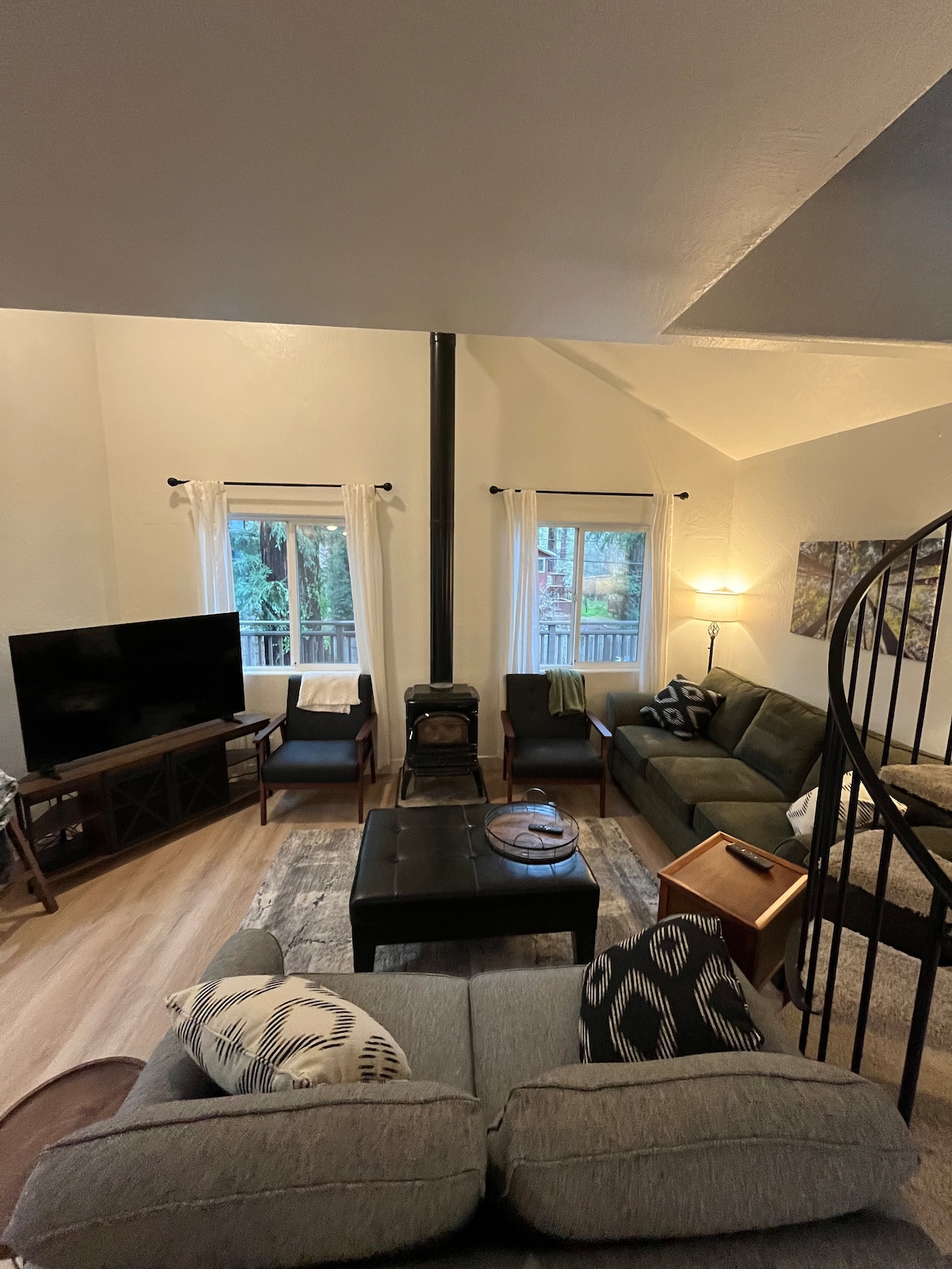 Permit#19570. Large new spa added March '25. Massive Redwoods surround you while you stay at this amazing retreat home in Mount Hermon. Kids will love the tree house bunk room with climbing wall and also the backyard trampoline. Relax in the back yard at the huge picnic table or on the adirondack chairs while enjoying the majestic giant trees. Steps away from the adventure courses of Mount Hermon and many creek trails. Twenty minutes to the Boardwalk and 15 minutes to downtown Santa Cruz.