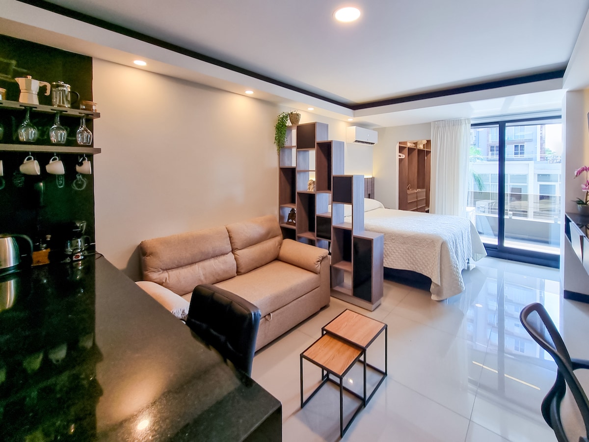 Lujoso departamento con ubicación inmejorable en Equipetrol. El espacio se encuentra totalmente amoblado y estarás rodeado de una amplia variedad de restaurantes, tiendas, cerca a importantes centros comerciales, entre otros. El edifico cuenta con áreas sociales en el último piso. Ya sea que estés aquí por negocios o por placer, nuestra ubicación te permitirá aprovechar al máximo tu tiempo en la ciudad.