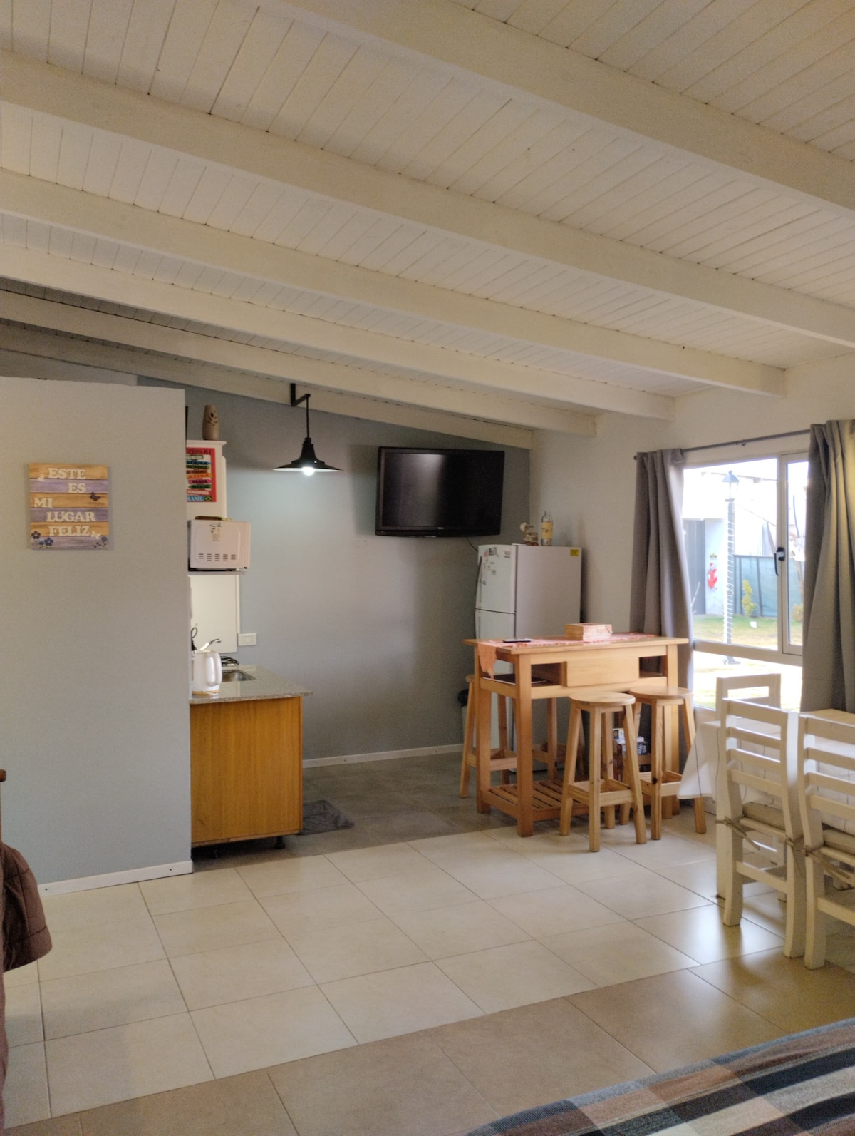 Quédate en este alojamiento céntrico para que tu familia, tú y amigos, o simplemente tú, estén o estés cerca de todo. Estamos a 200 metros de la plaza central, del supermercado, de una farmacia, a 300 metros del banco y correo postal, a 400 metros del Río Chico (con su costanera que invita a caminar, descansar, recrearse), y del cerro. ofrecemos un garaje con cámara de seguridad. contamos con wifi, TV, microondas, cocina con horno, alacena con vajilla completa para 4 personas, desayuno seco.