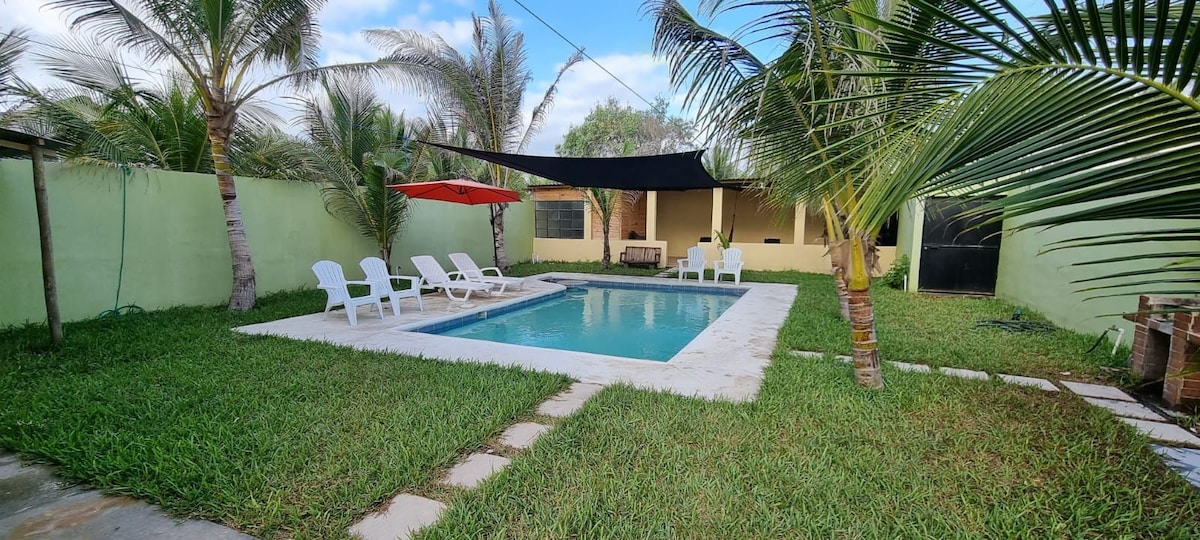 Casa de Playa frente al Mar, completamente privada. La casa cuenta con agua dulce se hizo cisterna para el efecto, y la piscina es de agua salada. Cocina completamente equipada con A/C. Dos habitaciones con A/C y baño privado cada una. Rancho de descanso con hamacas, salida peatonal a la playa, ideal para descansar, acompañado de amigos y familiares, Tranquilo y acogedor. Pensado para la privacidad de nuestros huéspedes. 3 parqueos privados adentro de la propiedad.