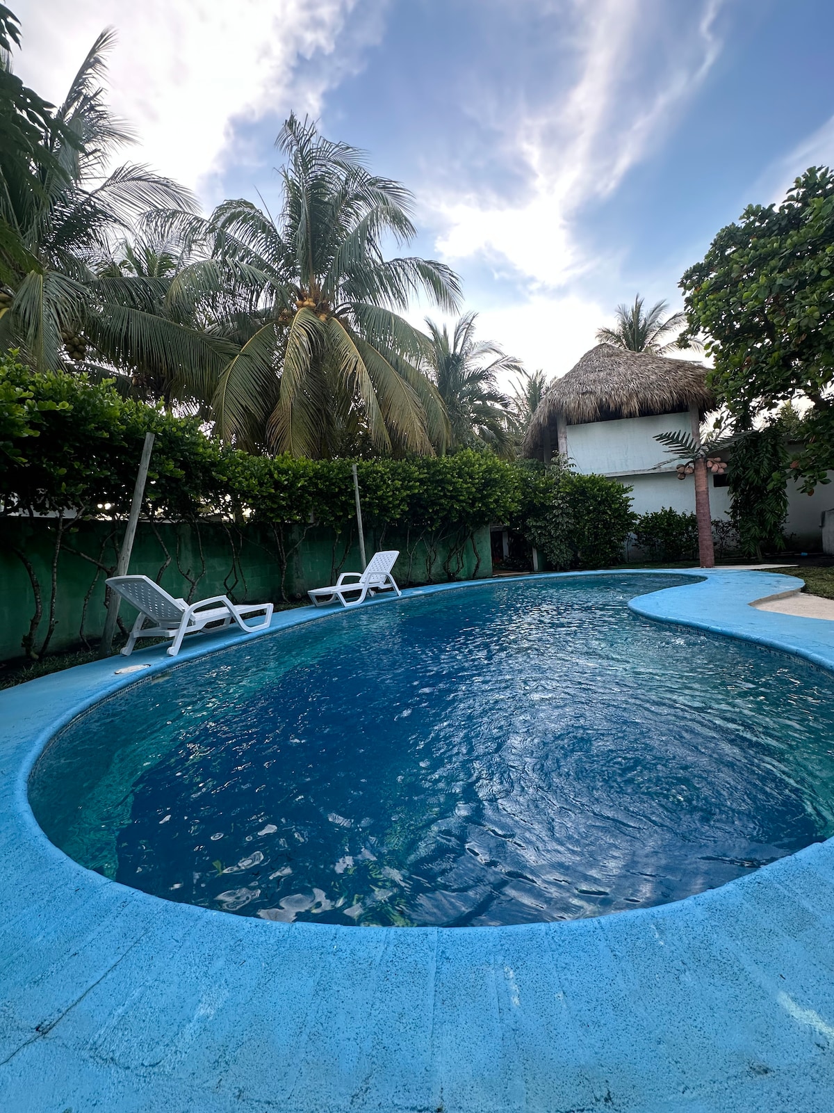 ¡Bienvenidos a Casa Nicolas, un exuberante rancho enclavado en el tranquilo y seguro pueblo de El Pumpo, a solo 300 metros de la playa y muy cerca de Monterrico. ¡Promete ser una impresionante retirada familiar tropical donde podrás tomar el sol, nadar en la piscina y mar y mucho más! las comodidades fantásticas y las instalaciones sobresalientes te dejarán boquiabierto. ✔ Casa de huéspedes ✔ Cocina al aire libre ✔ Piscina ✔ Hamacas ✔ Aparcamiento gratuito
