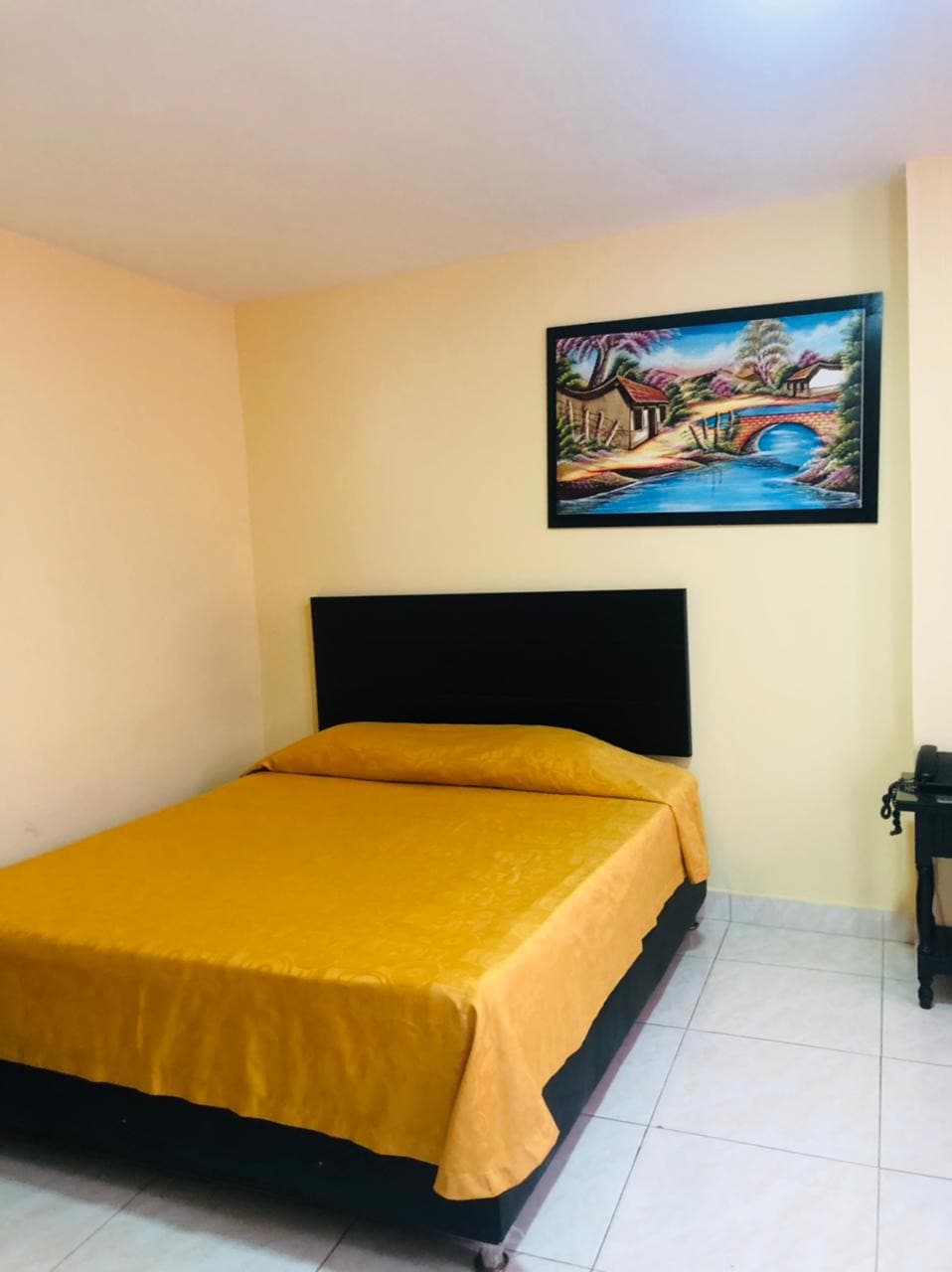 Moderna Habitación de Hotel de 1 Dormitorio y un Baño disponible para alquilar. Situado en la Avenida de las Américas. La Habitación incluye desayuno , Televisor Pantalla Plana Con Netflix, Internet de alta Velocidad, Parqueadero junto al edificio.