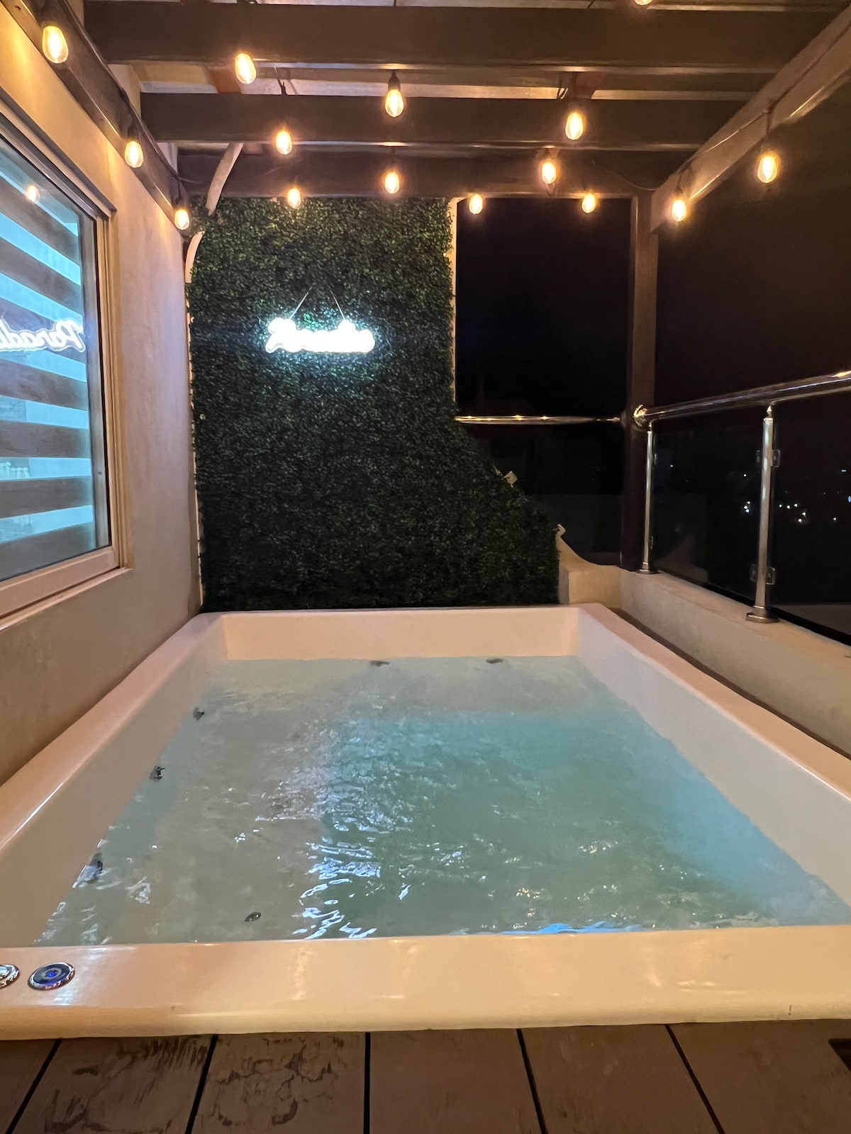 Nuestro apartamento está situado en el centro de Santiago, 2 dormitorios con **JACUZZI grande PRIVADO**, parrilla para barbacoa, TV inteligente de 75 pulgadas, aire acondicionado, zona de bar, zona de estar al aire libre.