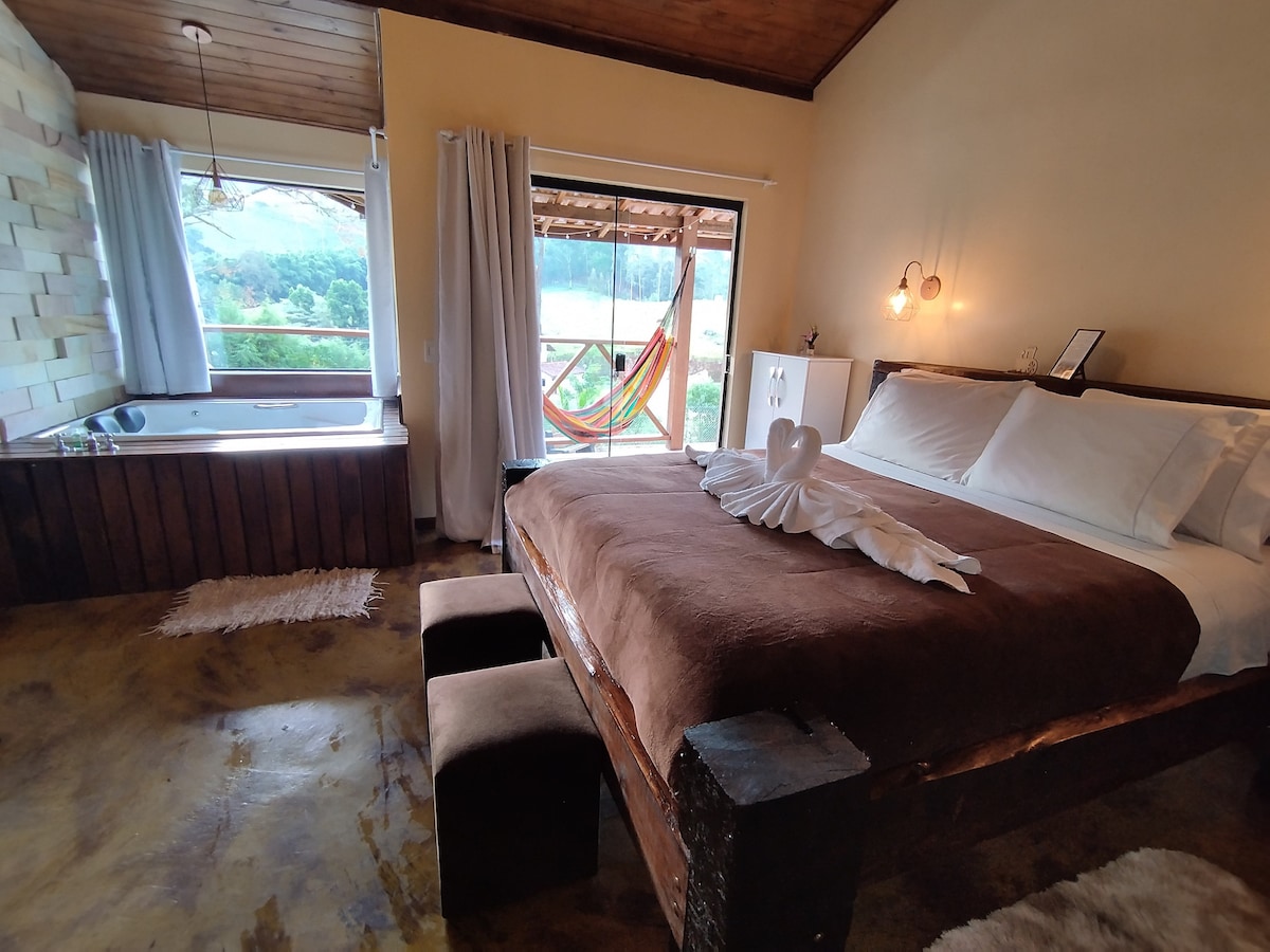 Chalé rural em plena serra da Mantiqueira. Ideal para os que buscam conforto e tranquilidade em meio a natureza. Espaço para 2 pessoas com banheira de imersão e vista para as montanhas em meio a floresta particular. Deck com vista panorâmica. Situado no coração da serra a 16km do centro de Santo Antônio do Pinhal (SP), 10km de Sapucaí Mirim (MG) e 18km de São Bento do Sapucaí (SP). Essas 3 cidades dispõe de excelentes opções gastronômicas, de entretenimento e de turismo de aventura.