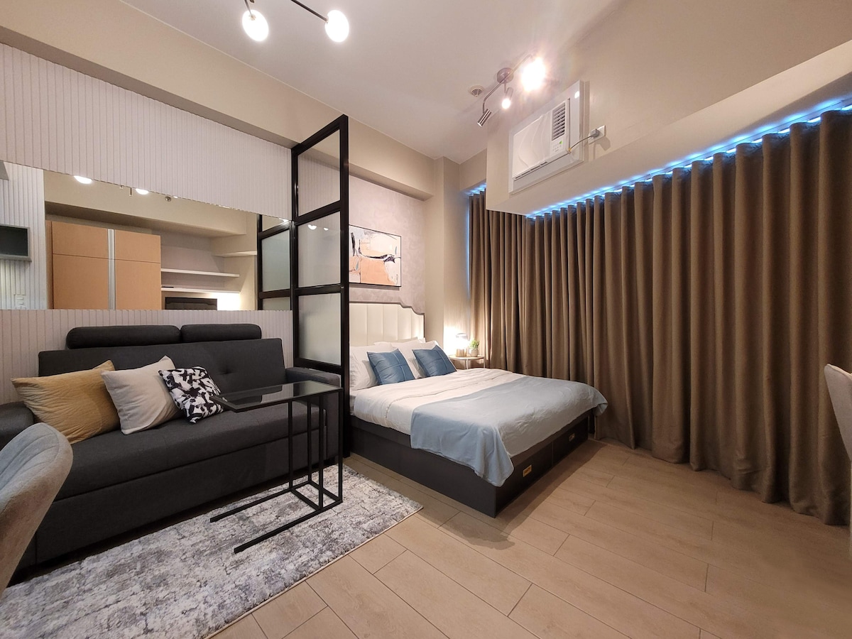Una gran unidad de esquina de 62 metros cuadrados con aire acondicionado, estratégicamente ubicada en una carretera principal con balcón que se abre a la piscina. El lugar está a pocos pasos del hipermercado SM para todas tus necesidades y comestibles, así como tendrás un Cocina bien equipada. Puedes aparcar directamente debajo de tu alojamiento con Aparcamiento gratuito en el sótano. Disfruta de acceso ilimitado a la piscina y al gimnasio. La ducha tiene agua caliente, Internet es de 200 Mbps, puedes ver todos tus programas en 4k en el gran televisor inteligente.