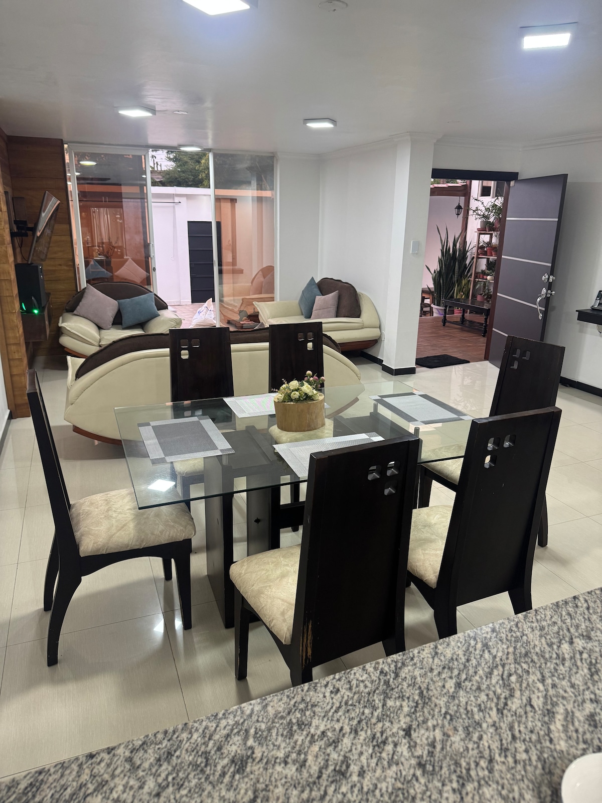 Diviértete con toda la familia en este alojamiento con estilo elegante y moderno con domótica en toda su casa, lugar céntrico a 5 minutos caminando encuentras KFC,Gran Aki,Tuti,Farmacias, Supermecados, etc.. 🛏️ 1 habitación con cama de 2 plazas y media 🚿 Baño privado. 🍳 Cocina equipada con lo esencial para preparar tus alimentos. 📶 WiFi de alta velocidad. ❄️ Aire acondicionado. 📺TV con acceso a Netflix. 🧊Refrigedor. 🚗 Estacionamiento Y muchas cosas más