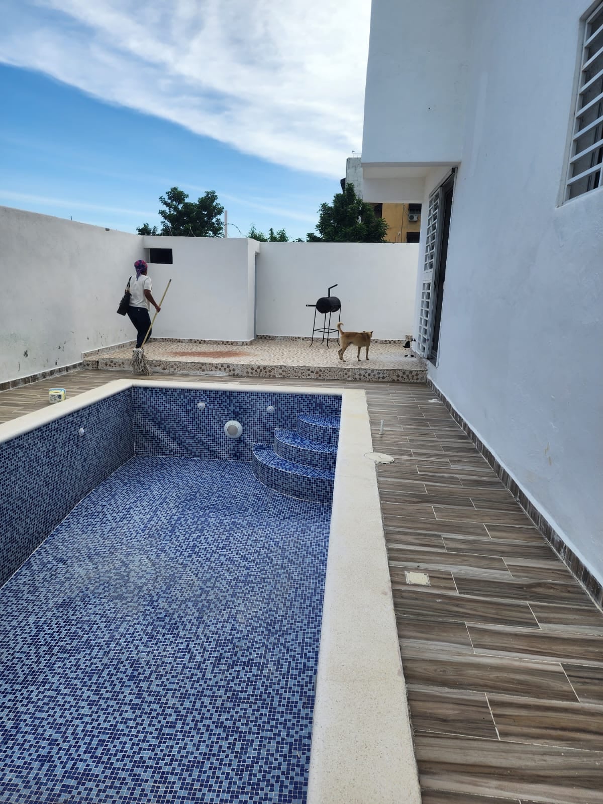 Este elegante alojamiento es ideal para viajes en grupo. donde podras disfrutar de la piscina en compania con tu grupo. es ideal para pasar momentos tranquilos con la familia o amigos. La propiedad del primer nivel es la que esta disponible que mostramos en la foto. Para su seguridad la propiedad tiene camara en las zonas comunes exterior de la propiedad como parqueo y area de piscina y terraza al aire libre. No se aceptan fiestas o eventos.