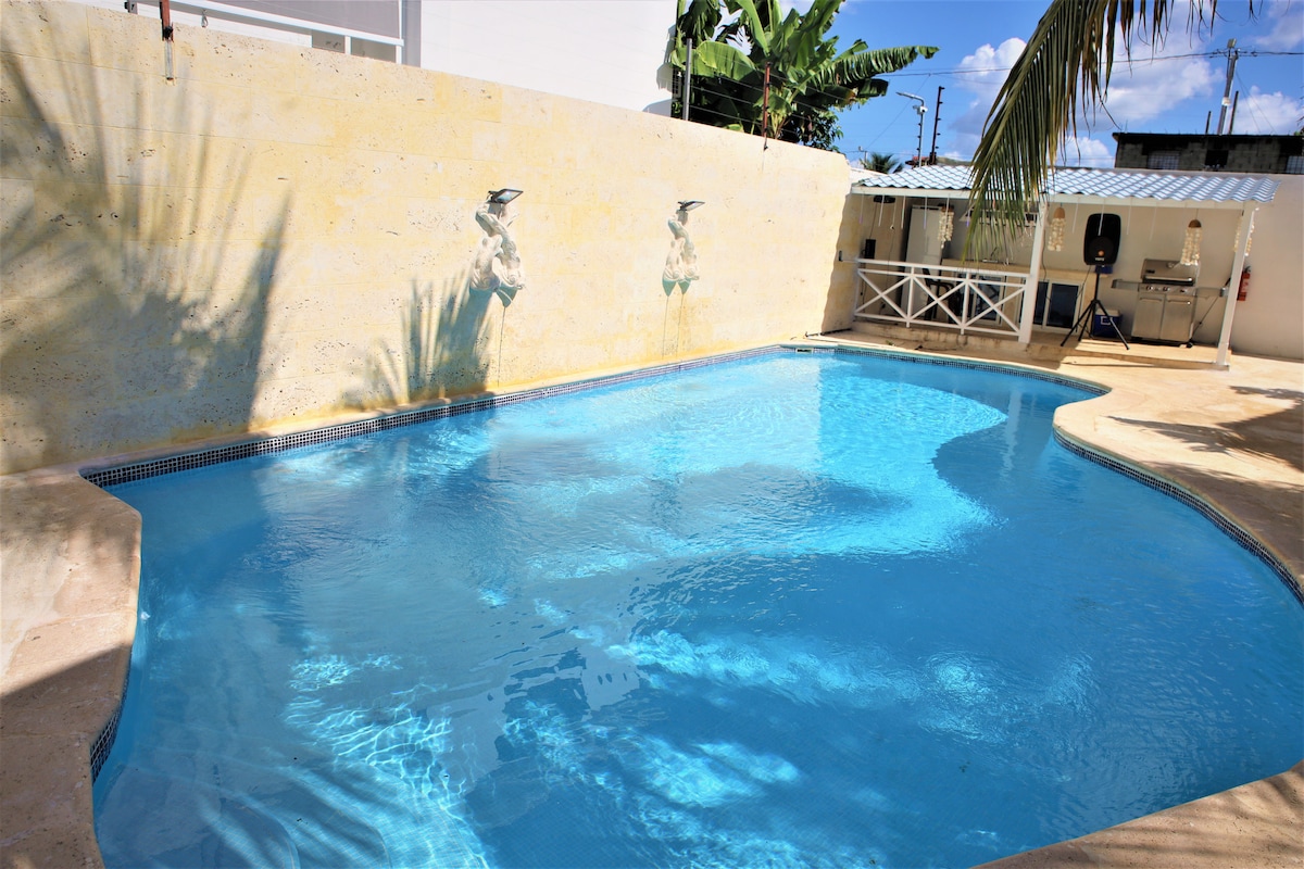 Quieres desconectar y disfrutar de la naturaleza? Este alojamiento es ideal para pasar un fin de semana con toda la familia, con una decoración moderna y acogedora que te permitira sentirte como en casa. Disfruta de uno de los mejores espacios al aire libre en la piscina, donde puedes prepararte una deliciosa barbacoa mientras te relajas y disfrutas del sol . A 15 minutos del aeropuerto de las Americas y a 12 minutos del centro de la ciudad.