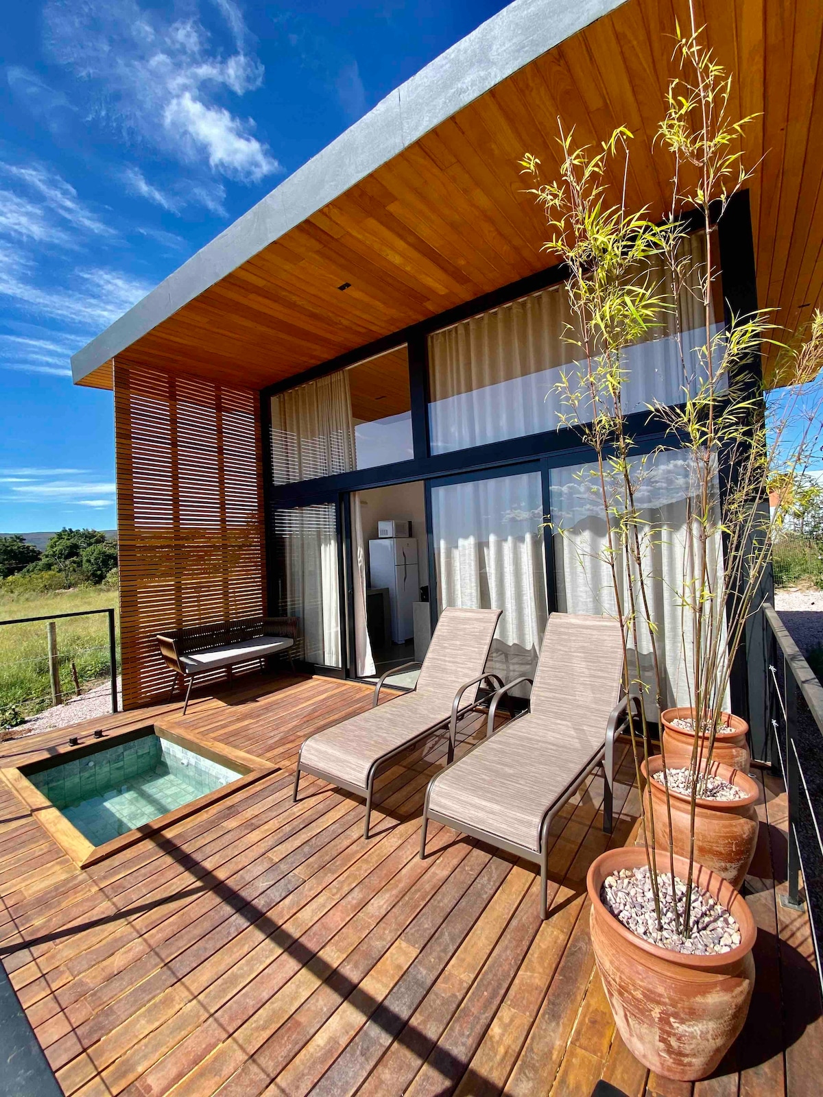 La cabaña Atrium es un refugio romántico con una vista cinematográfica de las montañas de Chapada dos Veadeiros. Desde la terraza o el balcón, admirá la Serra da Boa Vista y una puesta de sol inolvidable. A pocos minutos del Parque Nacional y de las cascadas principales, el Átria es el lugar perfecto para relajarse y vivir la magia de Chapada. Aquí, el tiempo se ralentiza. El sol sale entre las montañas, el silencio es profundo y las noches se bañan en un cielo estrellado: una invitación a disfrutar de la Chapada de una manera única
