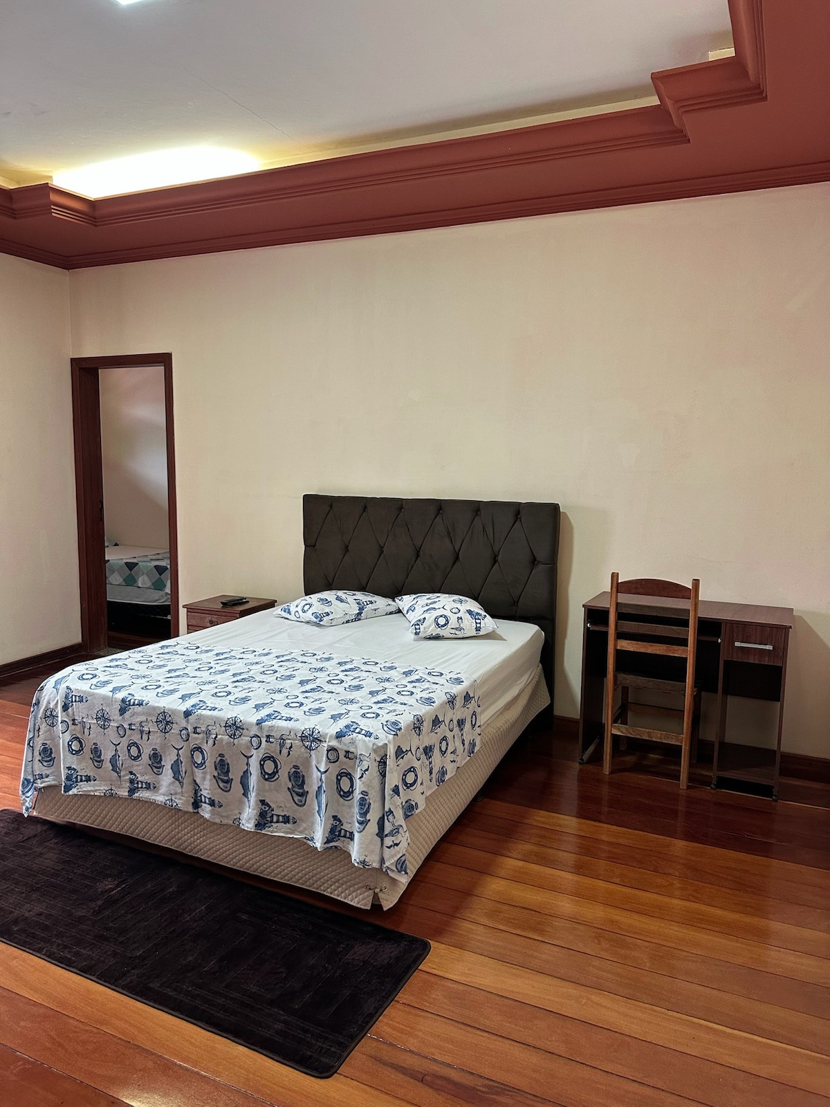 Suíte aconchegante com vista para a Serra da Canastra; localizado a 5 minutos do centro, e de fácil acesso. Café da manhã todos os dias. Duas camas (sendo elas uma de casal e outra de solteiro, ambientadas com divisão), TV, frigobar, Wi-Fi, ventilador e varanda, além de área compartilhada com cozinha funcional, sala e garagem coberta.