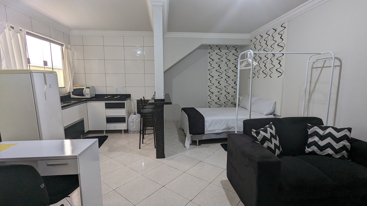 ¡Departamento nuevo, completo y seguro! Muy cerca del centro de Maringá, que proporciona toda la comodidad posible. Tiene internet de 600 MEGA (fibra óptica), dos televisores uno es SMART TV, aire acondicionado, sábanas limpias de cama y baño, plancha, juego de ollas y otros utensilios que facilitan la estancia. El edificio, además de ser nuevo, cuenta con ascensor, cámaras de vigilancia y plaza de aparcamiento cubierta. ¡Tenemos check-in y check-out flexibles con aviso!