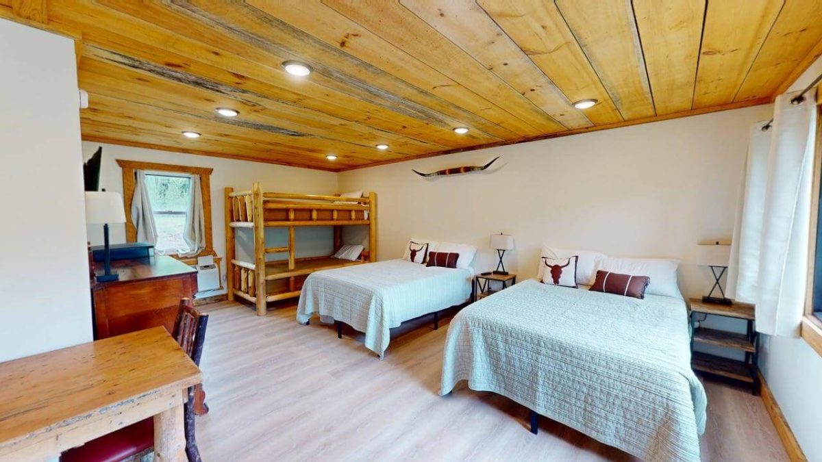 Acogedora cabaña de madera con cuatro dormitorios y a poca distancia del pueblo donde se puede disfrutar de restaurantes, tiendas, el lago y mucho más! ¡La casa incluye una espaciosa terraza Adirondack, sala de JUEGOS, fogata, parrilla, corn hole y mucho más! ¡Nuestra cabina incluye wifi, cable, aire central, lavadora y secadora, cocina completa y sala de estar! Una cama king y tres camas queen hacen que este espacio sea perfecto para familias y amigos. ¡Nuestra política no es reembolsable para cancelaciones y la tarifa por mascotas se cobra en el check-in!