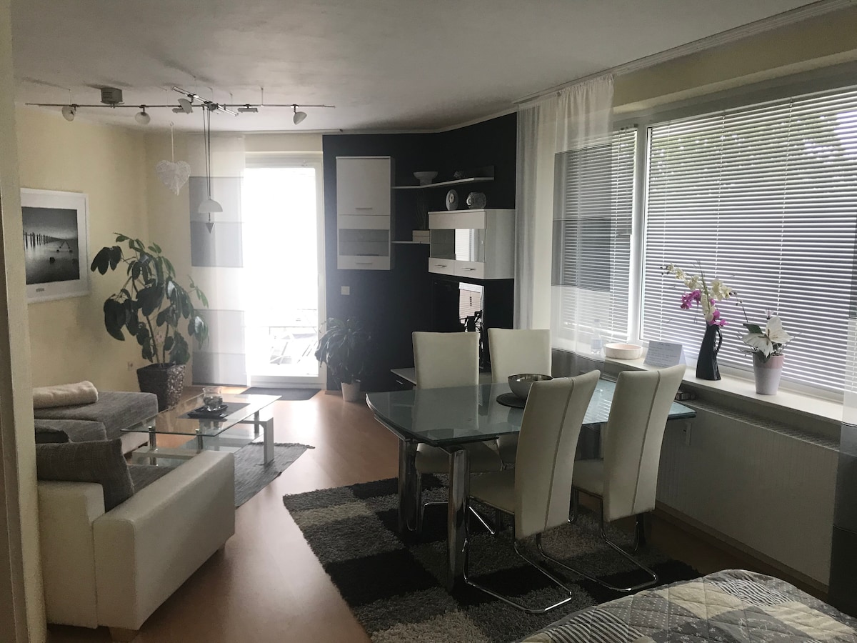 LLEGA*SIÉNTETE CÓMODO*EN CASA La villa de la ciudad fue construida recientemente en 2015. Desde 2016, te hemos ofrecido un apartamento de aproximadamente 55 m ² de tres habitaciones de aproximadamente 55 m ² con una terraza en la azotea de aprox. 35 m² en una ubicación suroeste, con capacidad para hasta 4 personas. (4 adultos + 1 bebé).