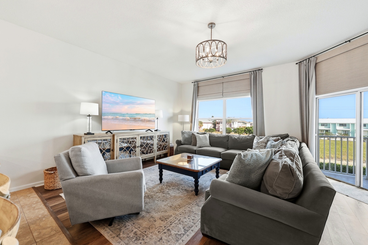 Nuestro tranquilo refugio en la playa, perfecto para estancias prolongadas y cortas. A solo 5 minutos a pie de la playa Fernandina. Los restaurantes cercanos te llaman, y las compras en Walmart y Harris Teeter están a poca distancia en auto. Relajate con colores inspirados en la playa, donde reina la comodidad. Nuestra acogedora morada de 2 dormitorios y 1 baño (camas KING y queen) ofrece un amplio espacio con cocina totalmente equipada para un máximo de 4 huéspedes ¡Los servicios incluyen pileta, cancha de tenis y parque infantil! Sillas de playa, sombrilla y carrito de playa incluidos en la unidad. <3 ^^