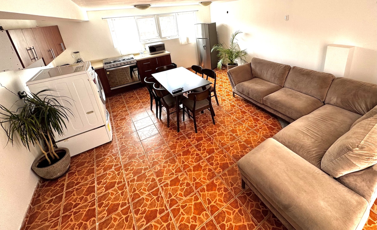 Departamento anexo en la planta baja de una casa, con entrada independiente, un cajón para auto en cochera techada, patio al aire libre y total privacidad con el resto de la casa. Espacio ideal para descanso en estancias cortas y medianas mientras visitas la ciudad de Zacatecas. Óptimo para 1 ó 2 personas, acondicionado con cocineta, desayunador, frigobar, espacio para trabajar y baño completo.