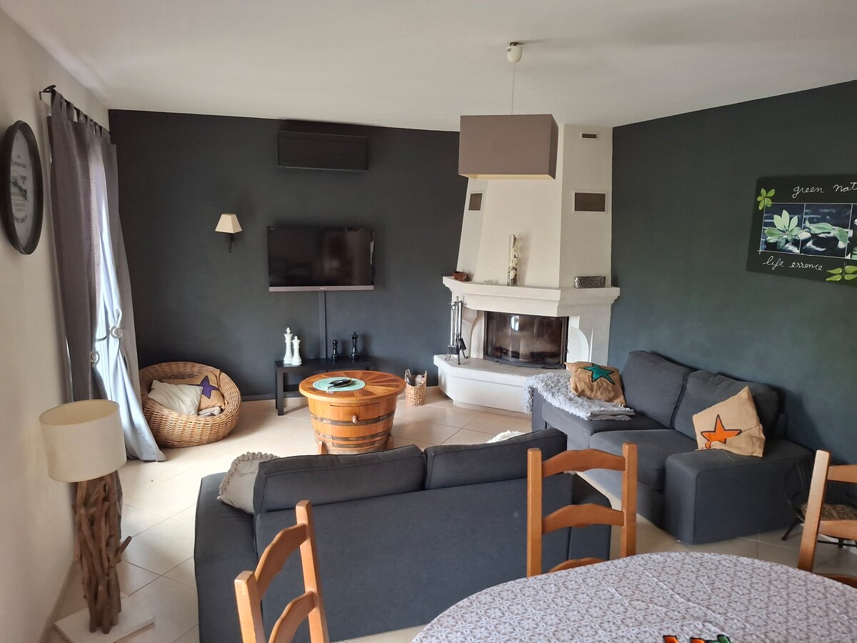 Nuestra casa es una casa cálida de 100m2, al principio de la departamental 119, pero una vez que el portal está cerrado, se puede olvidar rápidamente. Está reservada exclusivamente para el alquiler , con un gran estacionamiento privado, decorada de forma sencilla pero a nuestro gusto. Vivimos justo al lado, lo que nos permite estar disponibles rápidamente a pedido e intervenir en caso de problemas o reuniones organizadas.