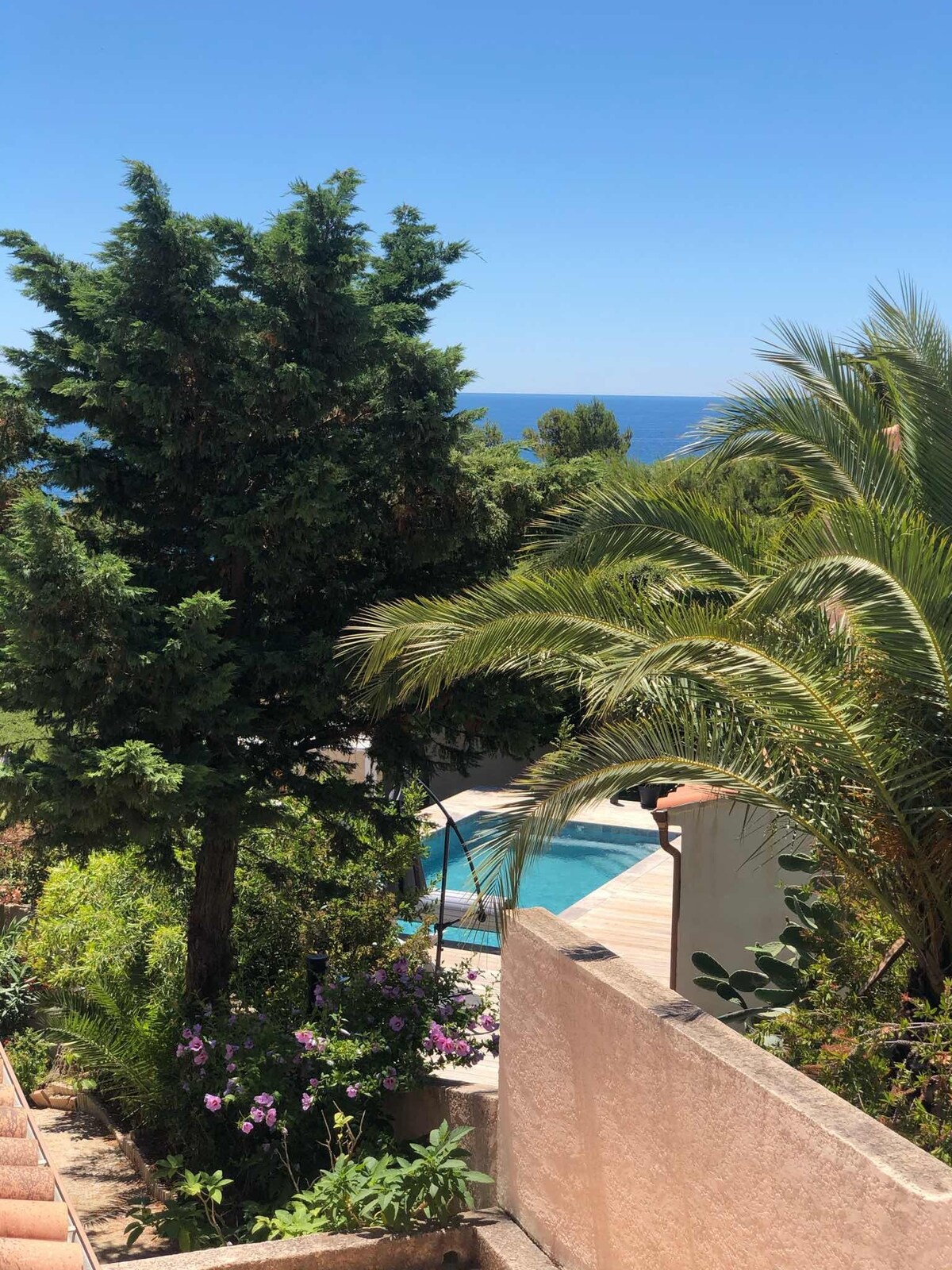 superbe appartement avec une vue à couper le souffle sur la mer..Au 1er étage d'une résidence avec place de parking et gardien.Une entrée par la mer, une par la ville,Portail automatique. Gare à moins de 5mn à pieds le port à 2 pas. marché le dimanche.superbe corniche pour les sportifs et les randonneurs. Terrasse de 36m2,toute équipée avec plancha.2 chambres une avec lit 160×200 à l étage avec rangements, la deuxième lit en 140×190 Salle d eau avec grande douche et WC Cuisine équipée
