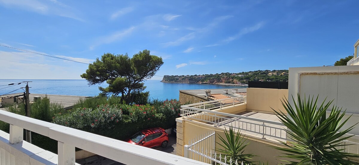 Relájese en este magnífico estudio nuevo de 24 m + terraza con vistas al mar y al puerto con plaza de aparcamiento privada. Cocina equipada, aire acondicionado reversible, sofá cama, toallas y sábanas, kit de bienvenida. Ideal para una pareja (cuna disponible). Acceso a la piscina durante el verano. ¡A 5 minutos a pie de las playas y el puerto! Podrá disfrutar de hermosas caminatas y hermosos paseos por toda la costa azul Carry, Ensues, cala de Niollon... Wifi y Netflix disponibles.